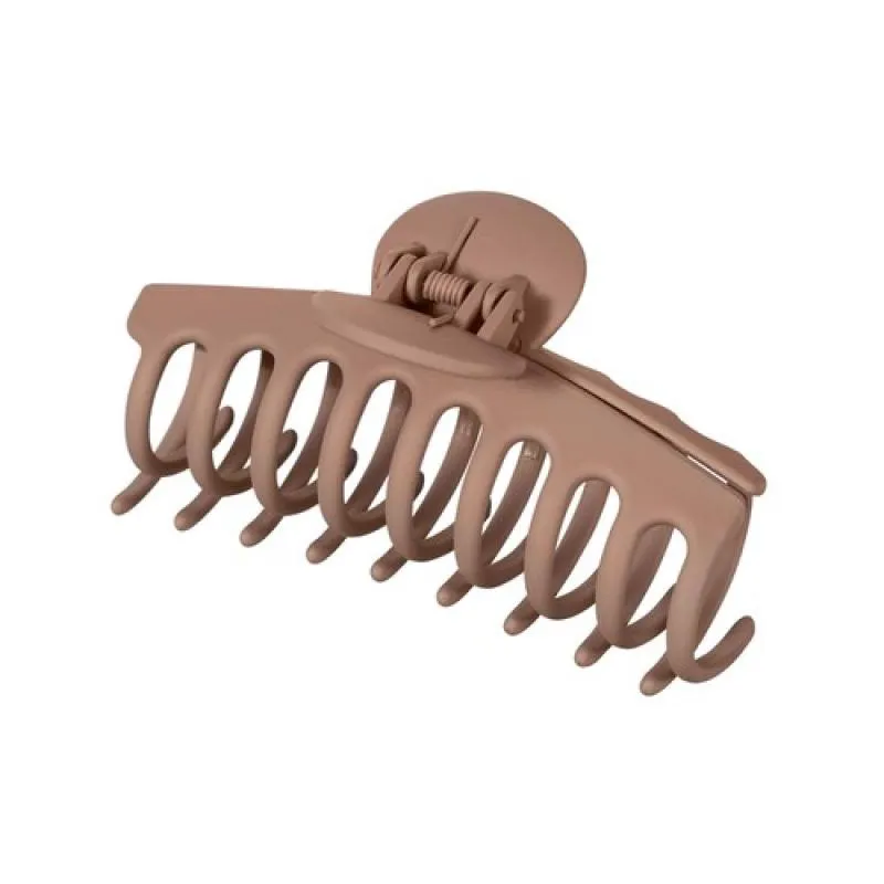 É uma piranha (presilha) de cabelo de tamanho médio na cor bege, projetada para prender e segurar mechas de cabelo com firmeza e estabilidade. A piranha serve para auxiliar no penteado, mantendo o cabelo no lugar desejado, podendo ser usada em diferentes tipos de cabelo e estilos, desde um rabo de cavalo simples até penteados mais elaborados.