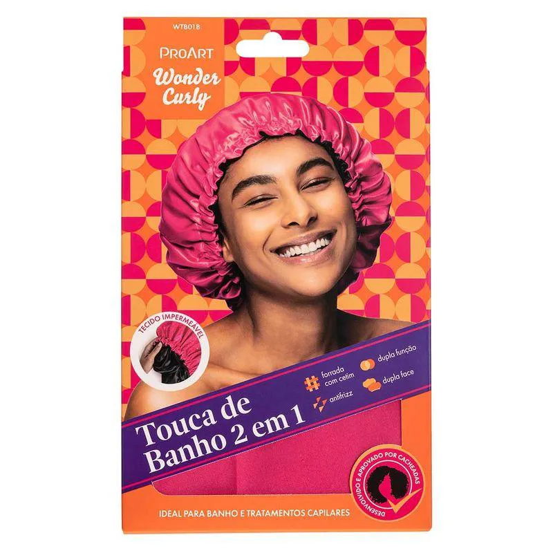 A Touca de Banho Prime 2 em 1 ProArt Wonder Curly foi confeccionada com materiais resistentes e de altíssima qualidade. É versátil, simples e eficiente, se tornando indispensável para a rotina de cuidados capilares. Utilize o lado acetinado voltado para dentro durante o banho para proteger os fios, evitando que o cabelo amasse ou desalinhe enquanto o tecido externo impermeável protege o cabelo da água. Utilize o lado avesso, com o exclusivo tecido impermeável voltado para dentro para potencializar a ação de tratamento dos fios durante a rotina de cronograma capilar.