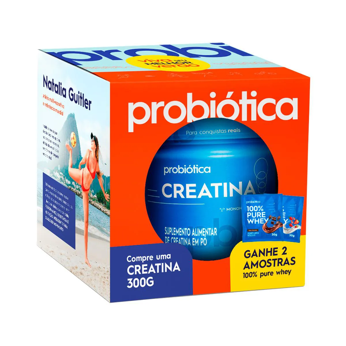 - Suplemento Probiotica Creatina 300g + 2 Whey Sachê 30g - Promopack Verão é ideal para melhorar o desempenho físico.