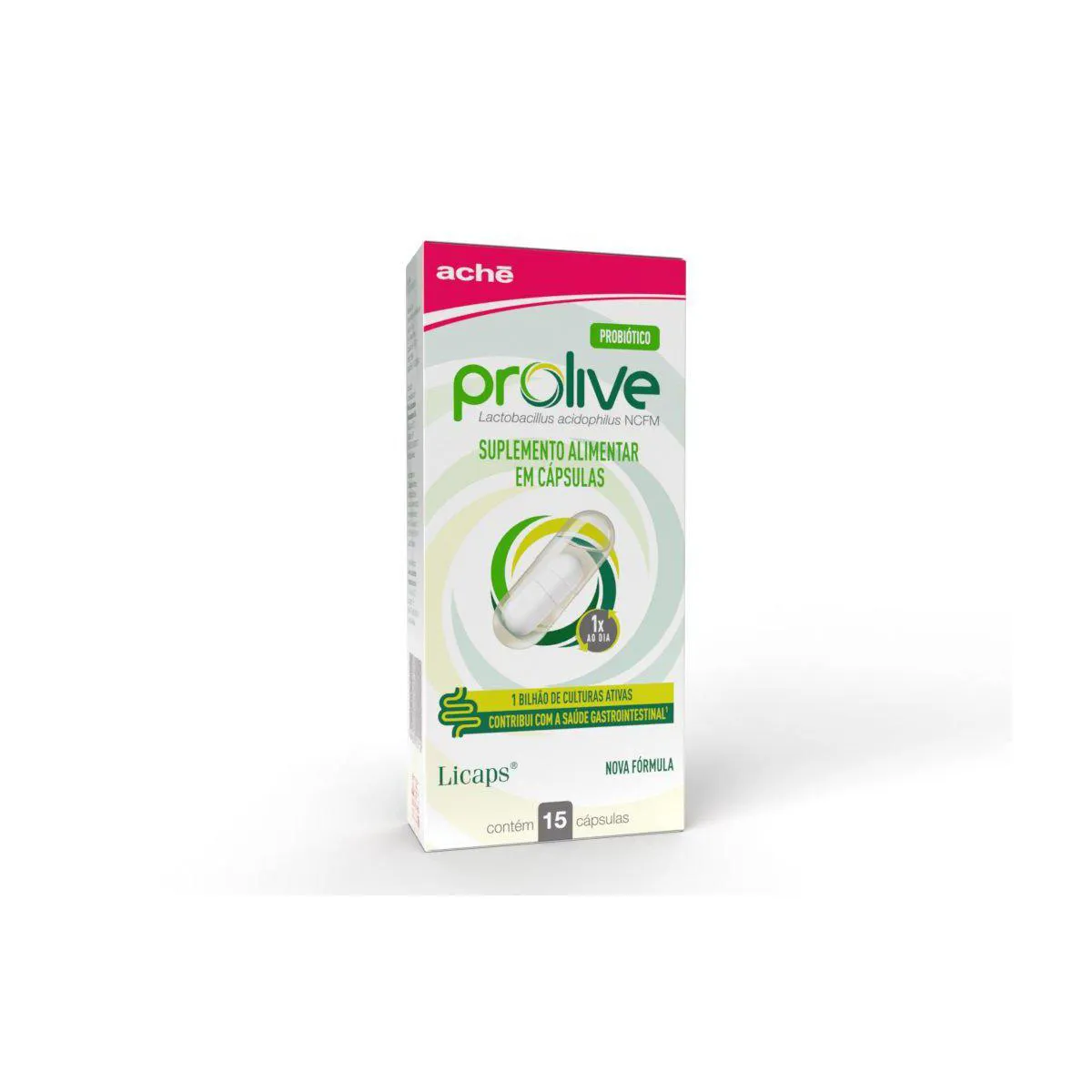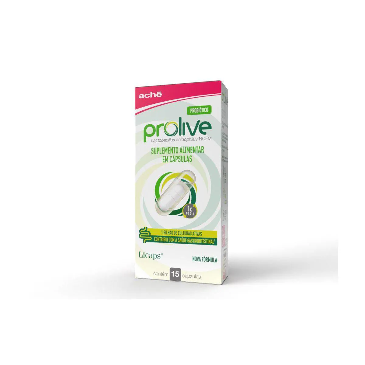 Prolive da Aché é um suplemento probiótico em cápsulas, um alimento funcional indicado para melhorar o funcionamento e o equilíbrio da flora intestinal. Ele tem em sua composição o probiótico Lactobacillus acidophilus LA 14 e a exclusiva tecnologia Licaps, que protege o probiótico, garantindo que ele seja liberado diretamente no intestino, portanto sobrevivendo ao processo digestivo.