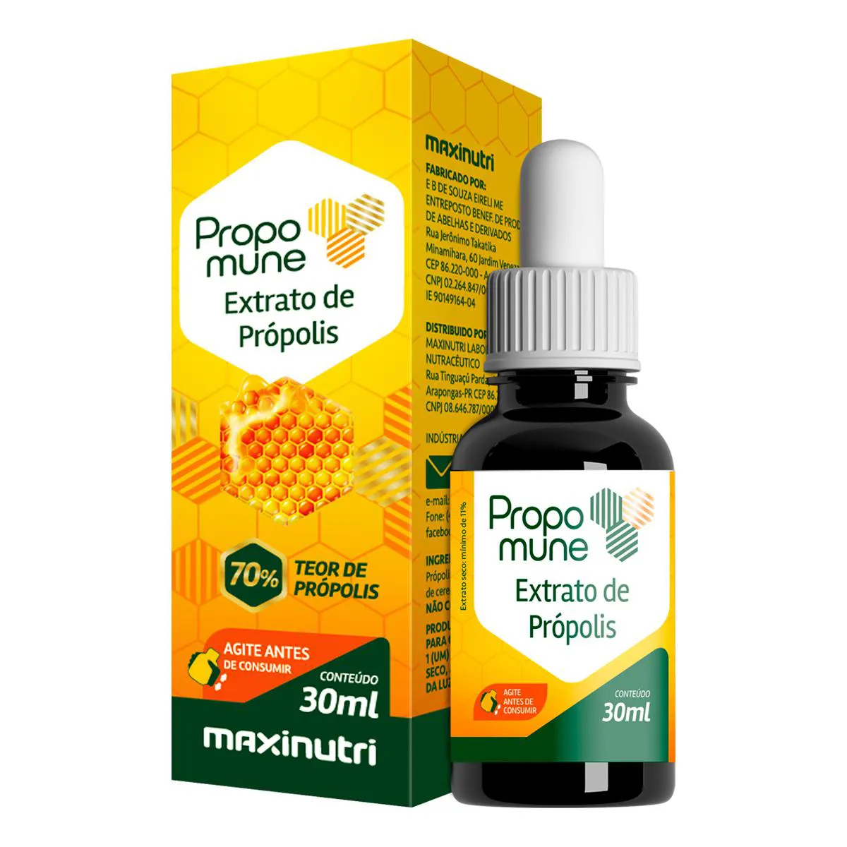 O Propomune Extrato de Própolis é um suplemento alimentar líquido composto por extrato de própolis, desenvolvido para fortalecer o sistema imunológico e oferecer benefícios para a saúde geral. Contém 70% de própolis e 30% de álcool hidratado de cereais, sendo um produto sem glúten.