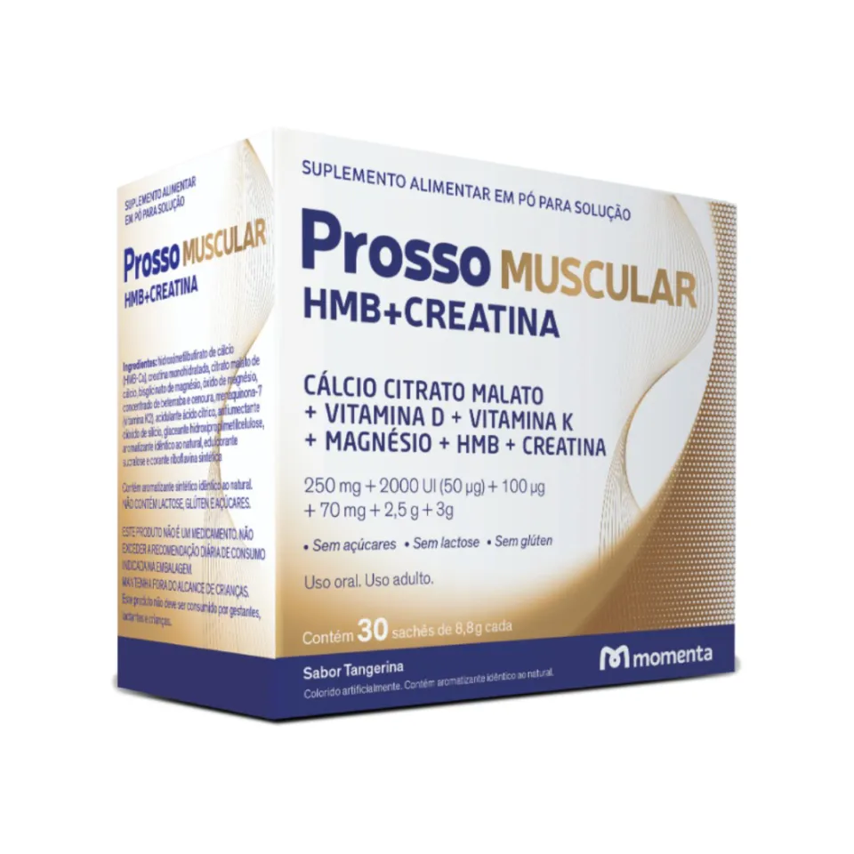 O PROSSO MUSCULAR é um suplemento desenvolvido para promover a saúde muscular e óssea. Sua fórmula combina nutrientes biodisponíveis que atuam de forma integrada, oferecendo uma cobertura de 360° para um bom desempenho físico, preservação e ganho de massa muscular, além de melhorar a densidade óssea e a mobilidade. O uso contínuo contribui para maior qualidade de vida e longevidade, com baixo potencial de efeitos indesejáveis.