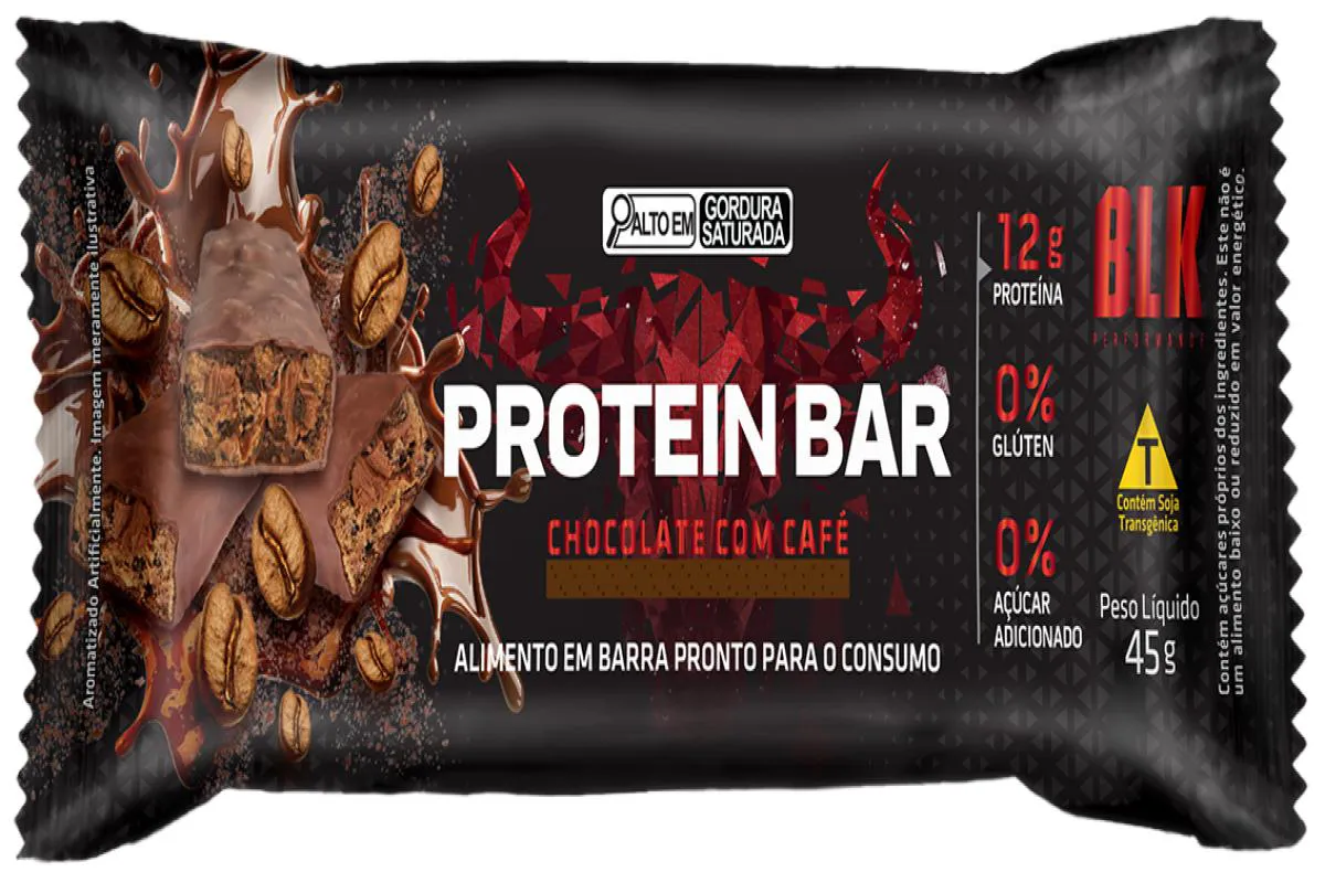 Protein Bar Blk - Barra de Proteína 12 Unidades # Original # Sabor Chocolate com Cafe