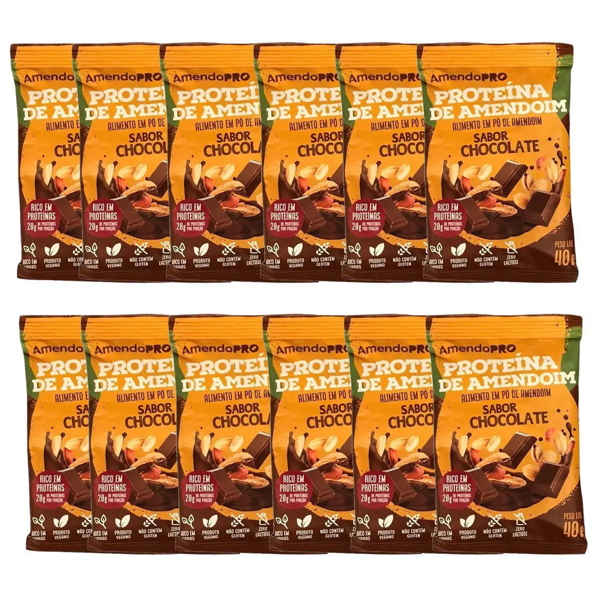 Proteina de Amendoim - 12 Unidades 40G Chocolate - Amendopro