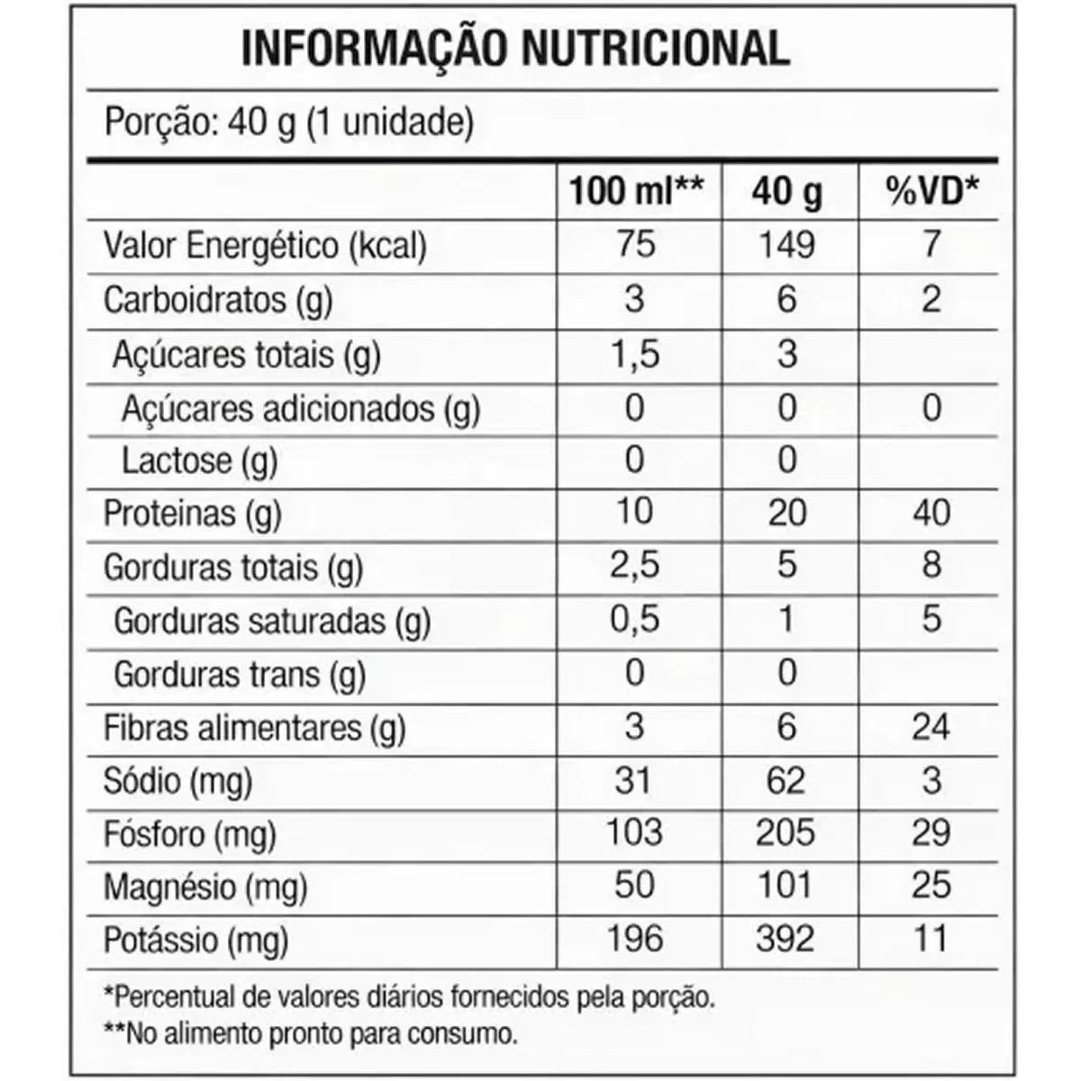 Em 200 ml de água, adicione 40 g (3 colheres) de AmendoPro e misture até homogeneizar.