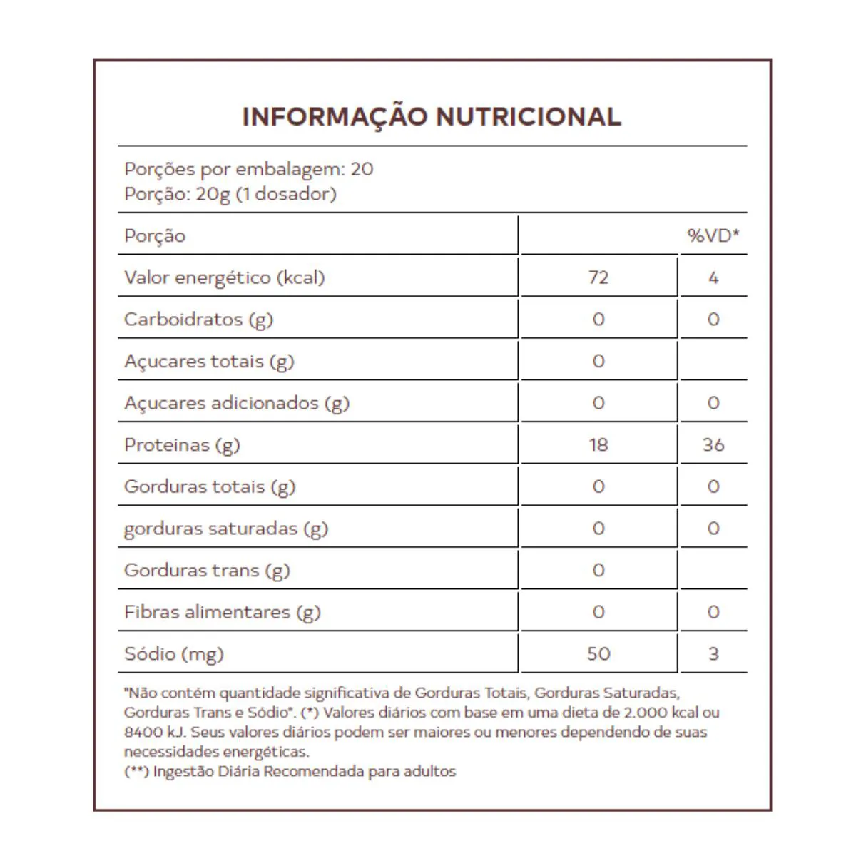 O Collagen Protein é uma proteína isolada e hidrolisada à base de peptídeos de colágeno, com a tecnologia inovadora alemã BODYBALANCE®. Trata-se de uma proteína isolada à base de peptídeos de colágeno que contribui para o aumento da massa muscular, aumento da força e recuperação pós-treino. Em combinação com a prática de exercícios físicos moderados, a suplementação com BODYBALANCE® contribui para o aumento da massa magra, da força e resistência muscular. Ingredientes: Peptídeos Bioativos de Colágeno ( BODYBALANCE®). Consumir 1 (um) ou 2 (dois) scoop(s) ao dia, antes e/ou depois do treino ou conforme orientação do médico e/ou nutricionista. Adicionar o conteúdo de 1 (um) scoop para cada 200 ml de água ou bebida de sua preferência, agitando até dissolver.