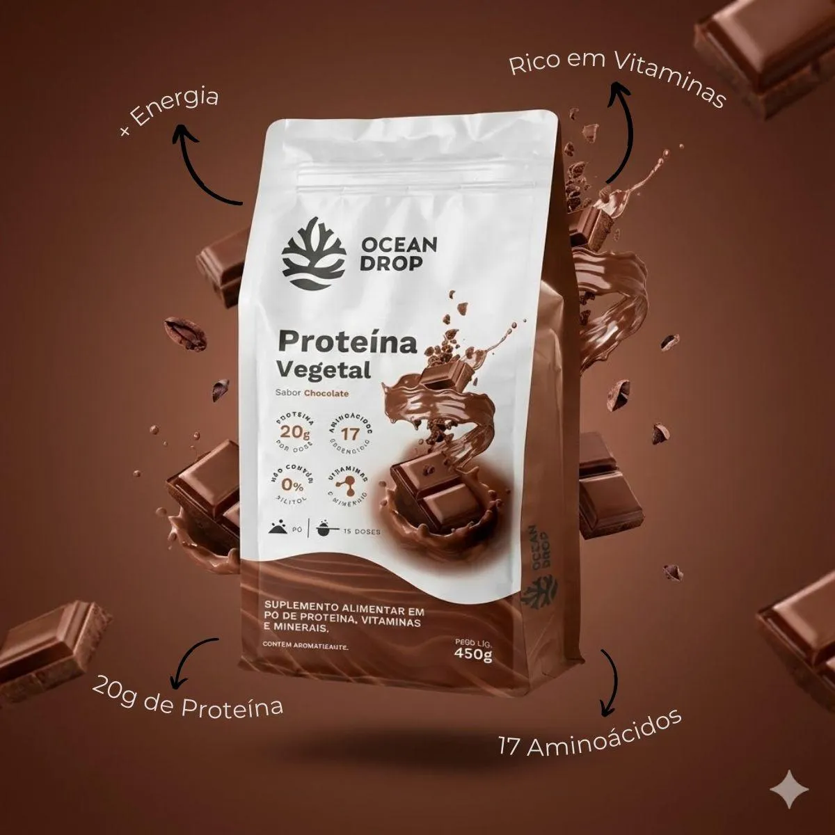 Proteina Vegetal 20G Proteina Vegana Chocolate 450G Ocean Drop