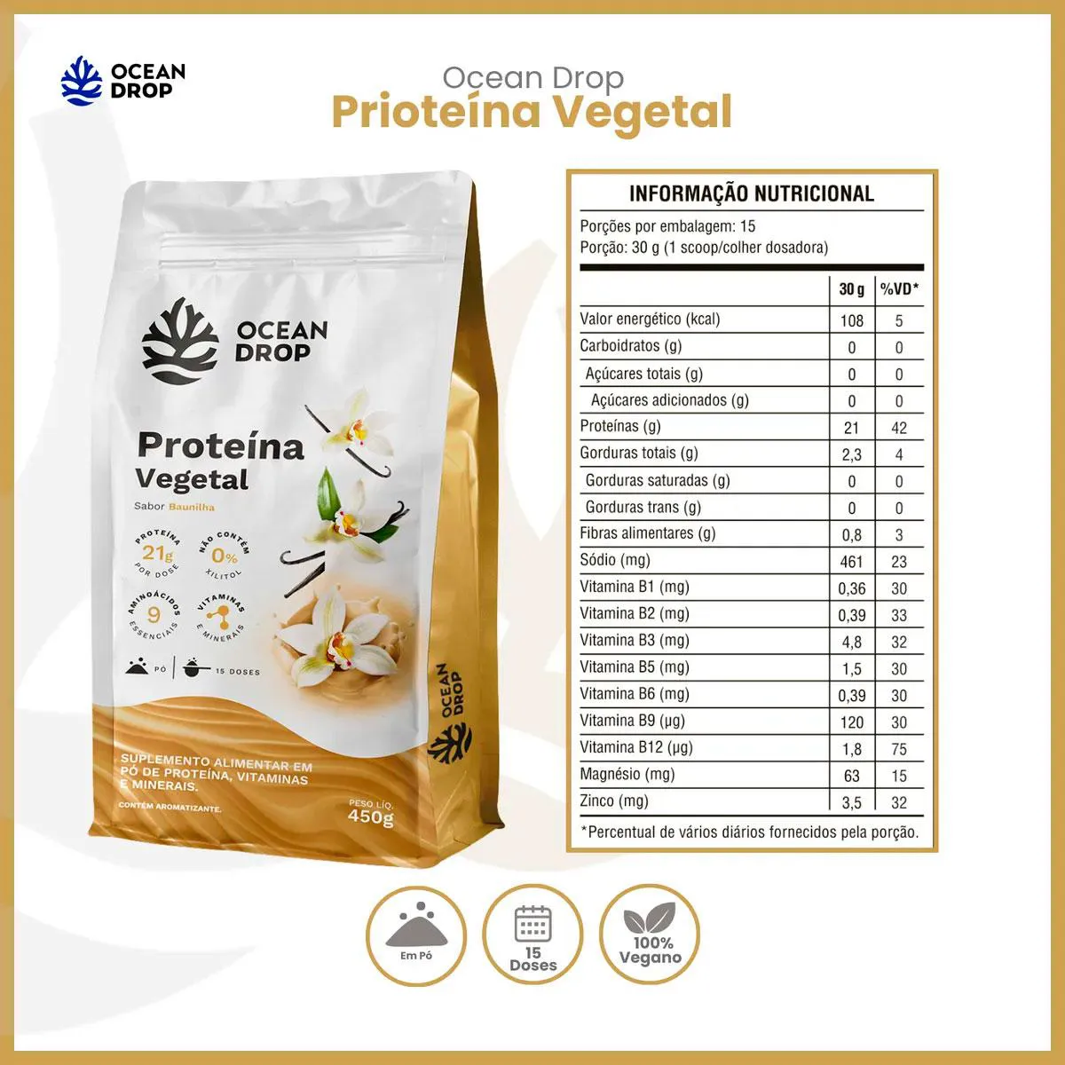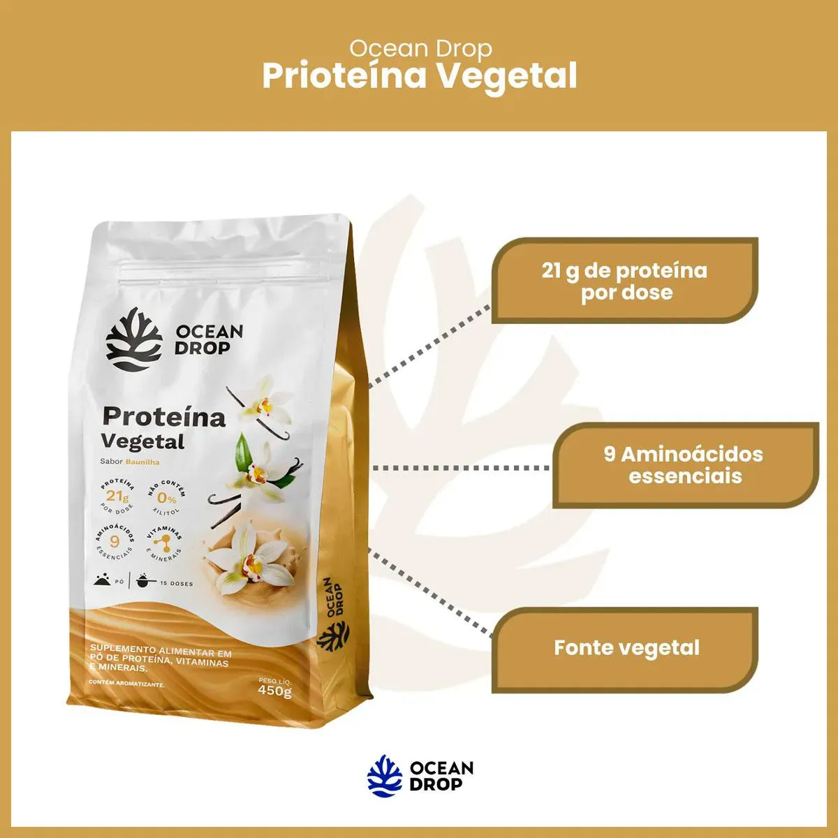 Proteína Vegetal Baunilha (450G) Ocean Drop
