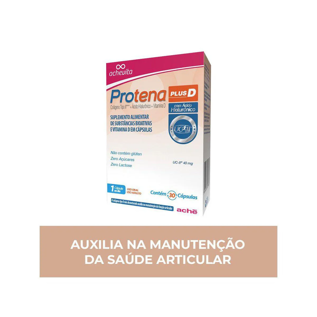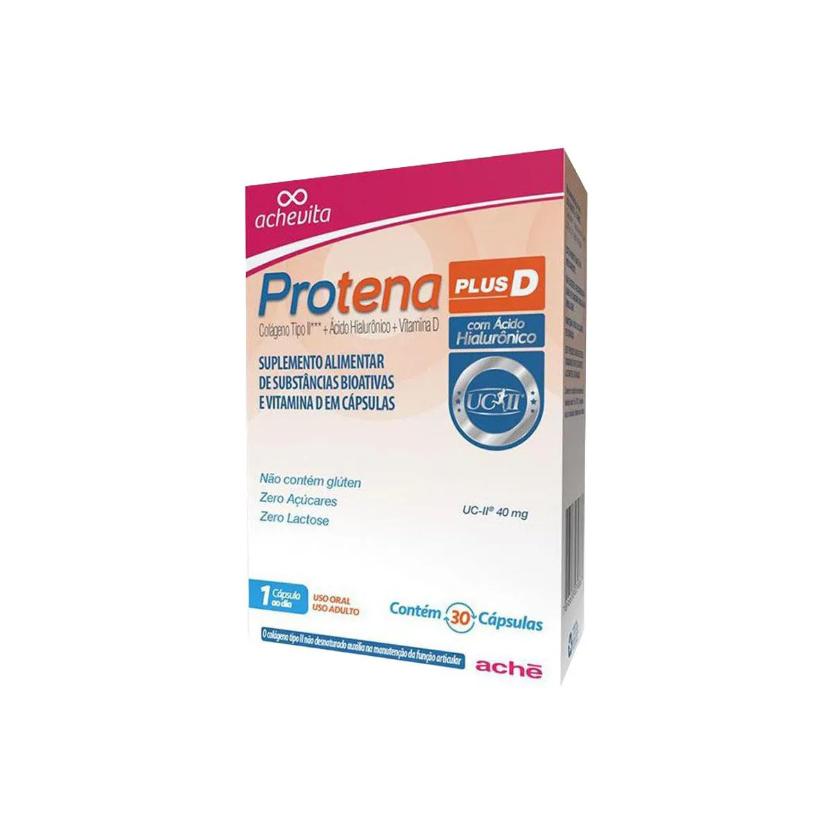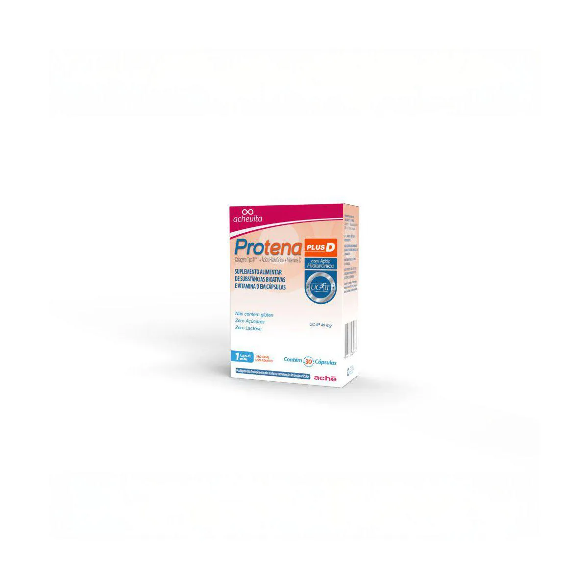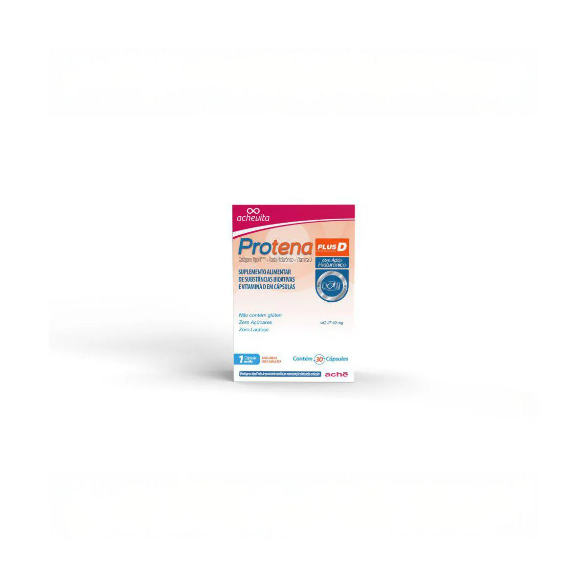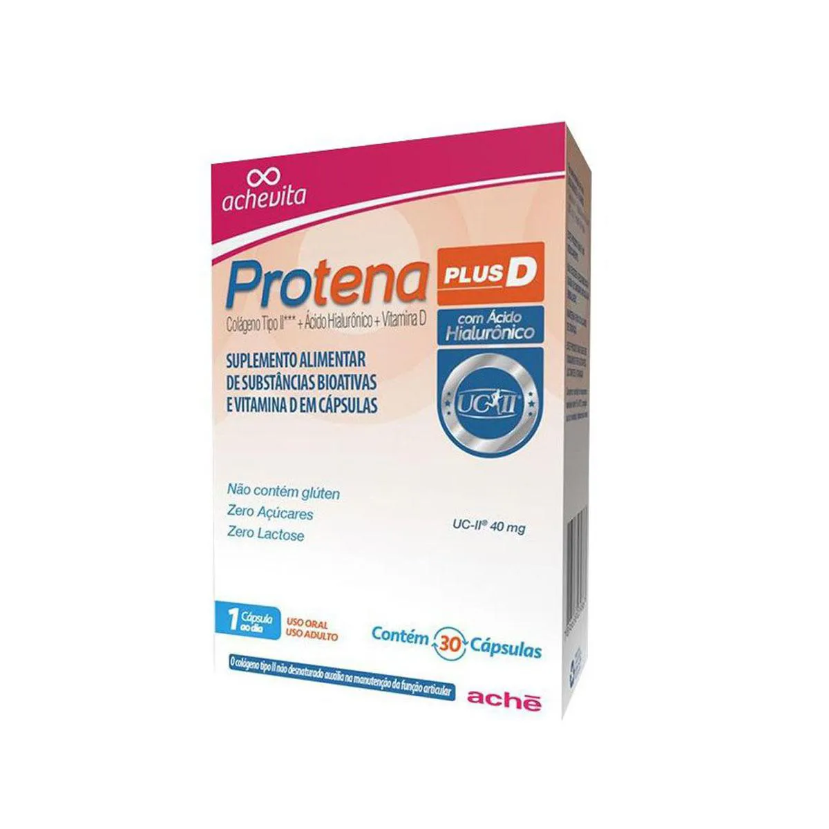 O Protena Plus D é um suplemento alimentar em cápsulas formulado com UCII 40mg (colágeno Tipo II), Ácido Hialurônico e vitamina d 1.000UI.