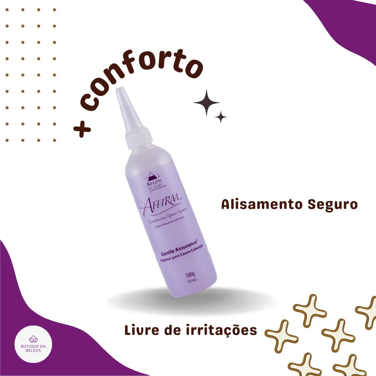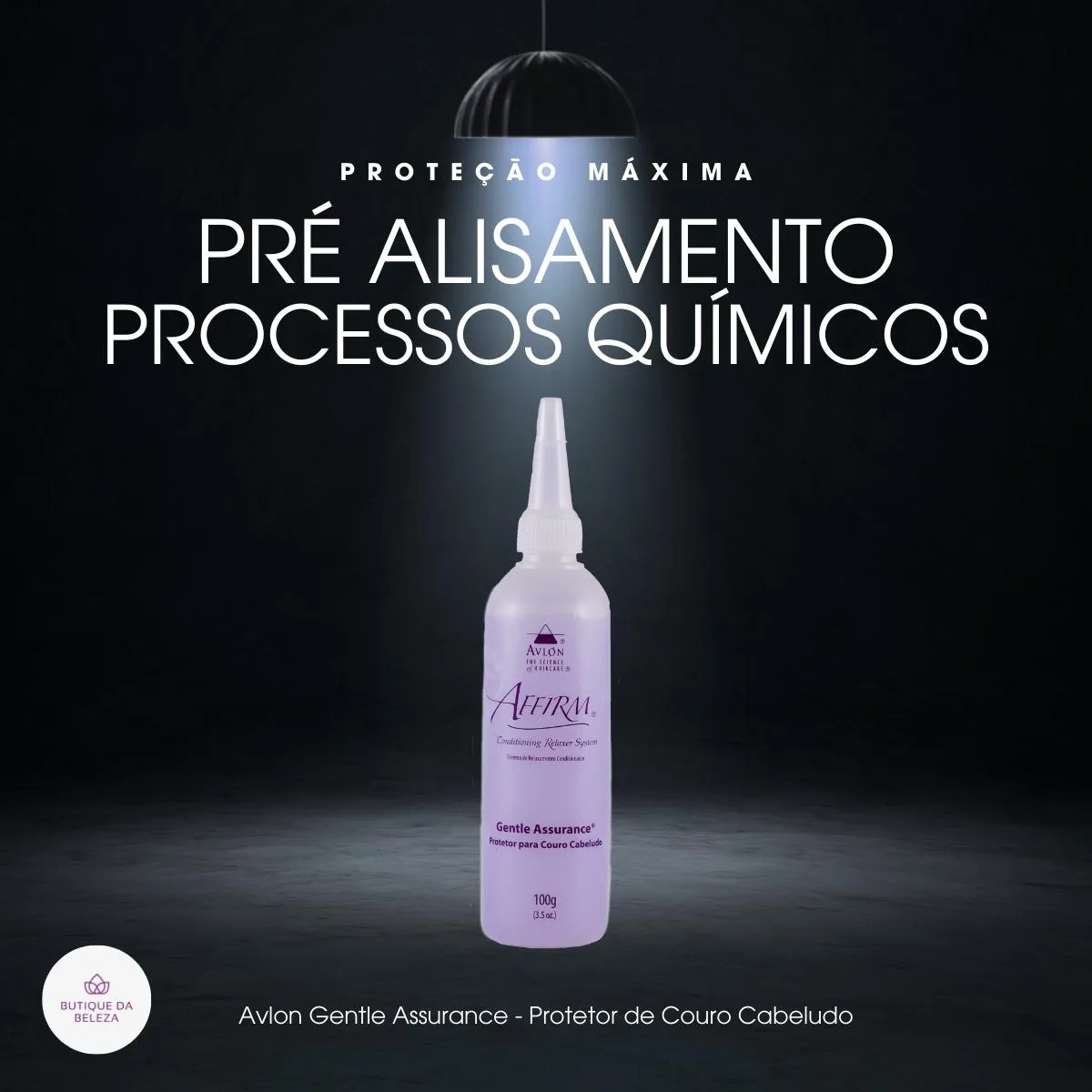 SERVIR E AJUDAR SÃO NOSSOS DEVERES AFFIRM GENTLE ASSURANCE - Protetor de Couro Cabeludo Se você busca proteger o couro cabeludo durante processos químicos como relaxamento e alisamento, o Affirm Gentle Assurance é a solução profissional indispensável. Desenvolvido pela marca líder em tratamentos capilares, ele cria uma barreira protetora eficaz contra irritações, queimaduras e desconfortos causados por produtos químicos agressivos, garantindo uma aplicação segura e confortável. INDICADO PARA QUAL TIPO DE cabelo Recomendado para todos os tipos de cabelo durante procedimentos químicos como relaxamento, descoloração e coloração. BENEFÍCIOS Proteção Avançada: Forma uma barreira que protege o couro cabeludo contra agentes químicos. Ação calmante: Minimiza irritações e desconfortos durante os procedimentos. Aplicação Segura: Ideal para salões e tratamentos profissionais, assegurando segurança e eficácia. RESULTADOS Couro cabeludo protegido, sem irritações ou danos, proporcionando um processo químico mais seguro e confortável. MODO DE USO Agite antes de usar. Aplique ao redor de toda a linha do cabelo no sentido da testa, e em direção à nuca, antes do Relaxamento. Se o cliente apresentar couro cabeludo sensível, aplique em toda a extensão do couro cabeludo. DICA: Para resultados superiores e máxima segurança, utilize com produtos da linha Affirm para alisamento e relaxamento profissional.
