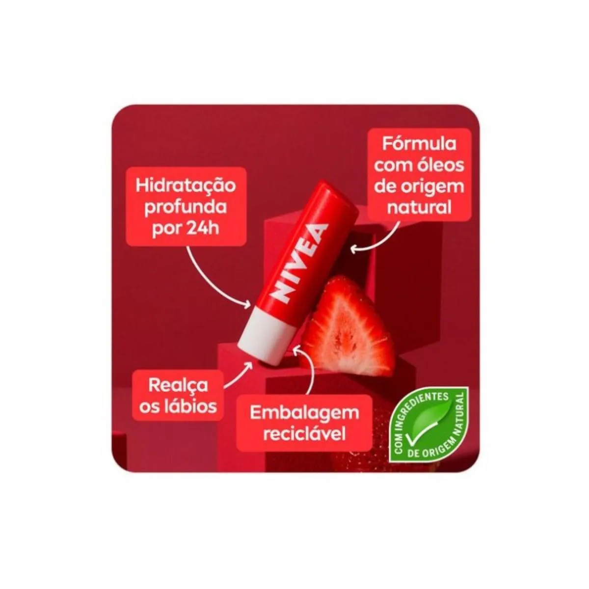 Protetor Labial Nivea - com Cor - Morango Shine - 4,8G