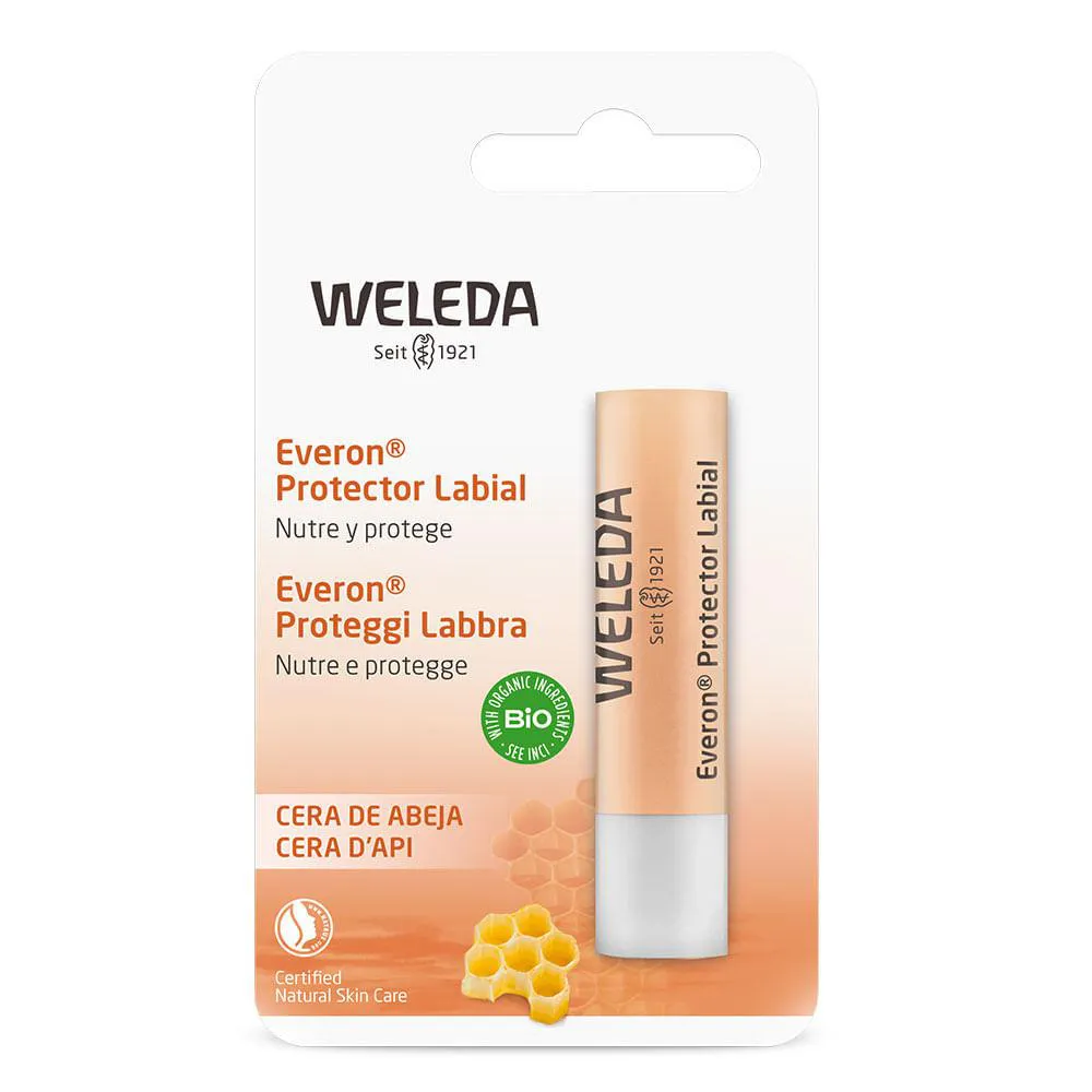 Composto por ingredientes 100% naturais e orgânicos que asseguram uma rica hidratação, o Everon Protetor Labial da Weleda nutre a delicada pele dos lábios e a protege de agressões externas, prevenindo o ressecamento. Os lábios ficam macios e com brilho natural. Sua formulação contém óleo de Jojoba, cera de abelha, manteiga de Karité e cera de Rosas.