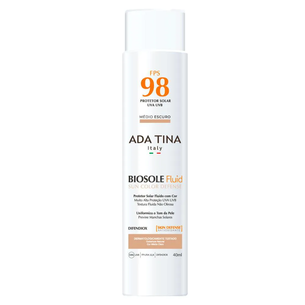 Protetor Solar Ada Tina Biosole Fluid Sun Color Defense Fps 98 Médio Escuro