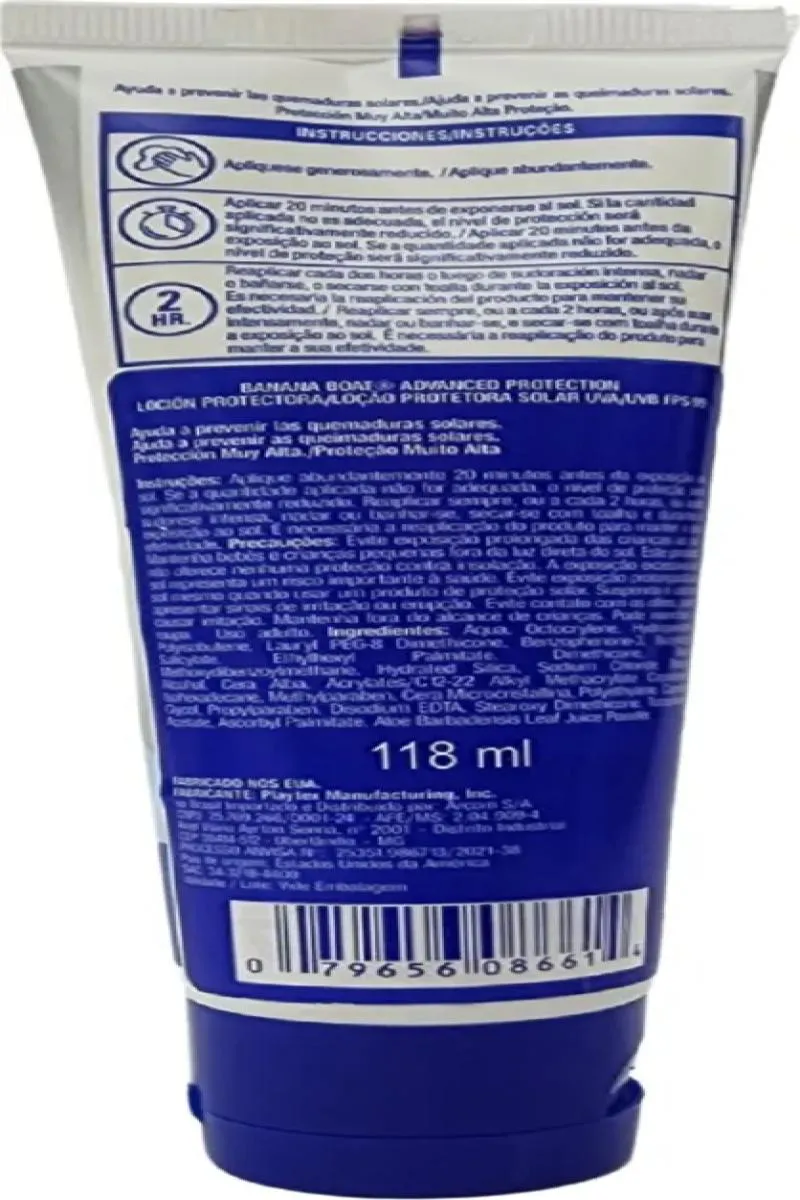 Banana Boat Advanced Protection Loção Protetora Solar UVA/UVB FPS 99 118ml