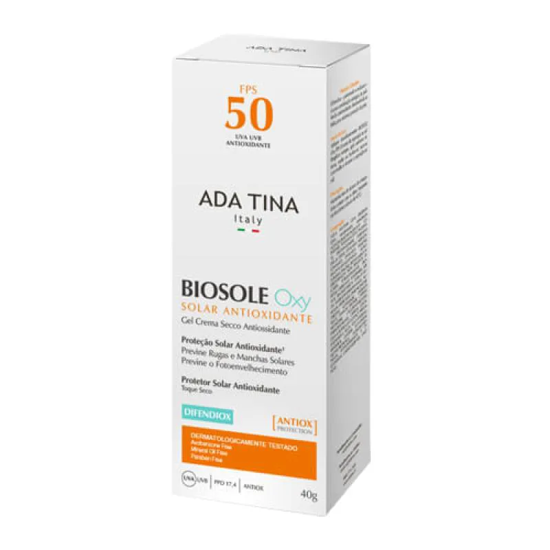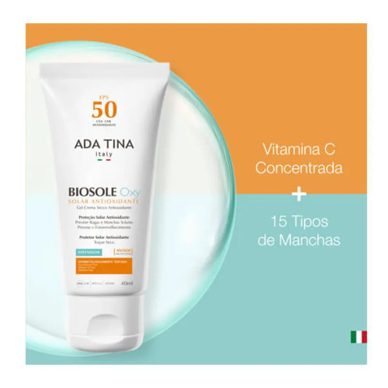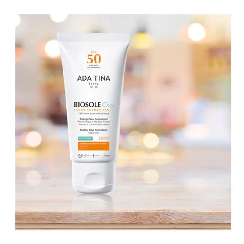 Biosole Oxy FPS 50 de Ada Tina é um protetor solar antipoluição com tecnologia Ozone Protection – proteção antiozônio – e ação antioxidante que age prevenindo 15 tipos de manchas.