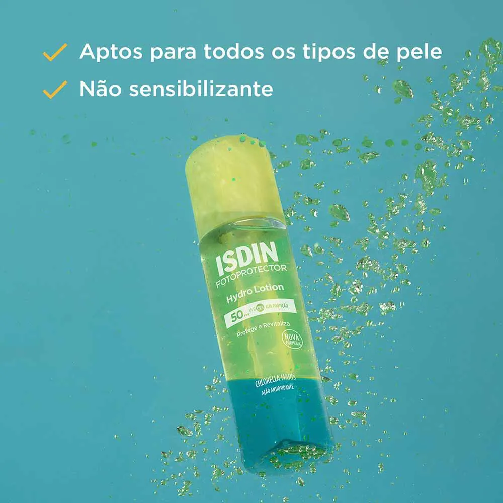 O Fotoprotector ISDIN Hydrolotion é um protetor solar corporal bifásico que oxigena a pele e protege contra os danos causados pela exposição solar com FPS 50.