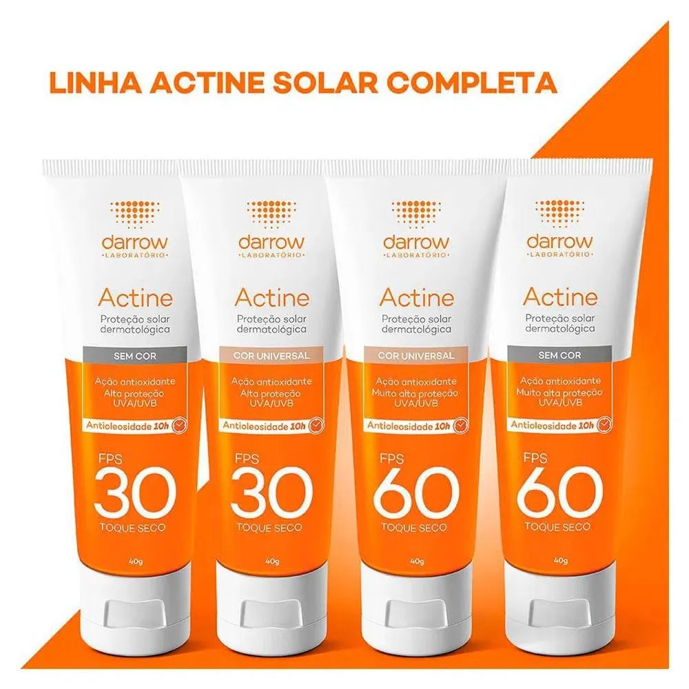 O Protetor Solar Darrow Actine FPS 60 possui muita alta proteção UVA/UVB com uma textura leve de absorção imediata e toque seco, proporcionando até 10h de proteção antioleosidade. Além disso, conta com ação antioxidante e previne a acne. Não obstrui os poros sendo ideal para peles oleosas com tendências acneicas.