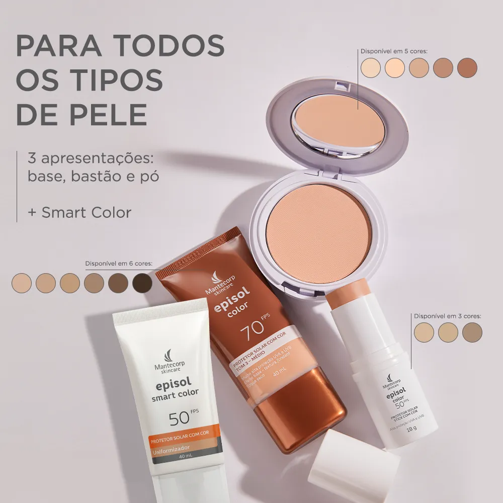 EPISOL COLOR STICK FPS 50 é um protetor solar facial em bastão muito prático e de fácil aplicação que possui alta proteção contra os raios UVA, UVB e protege contra a luz visível, especialmente luz azul.