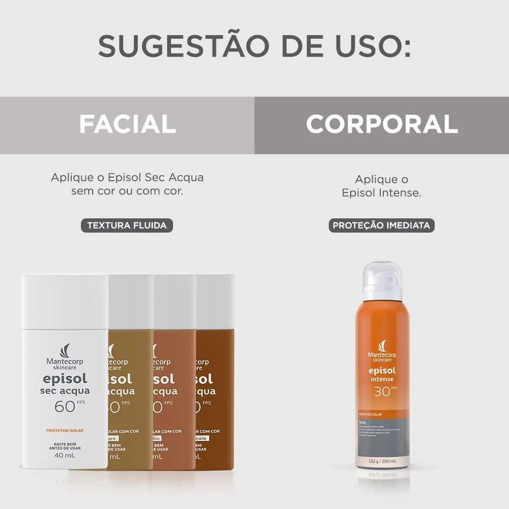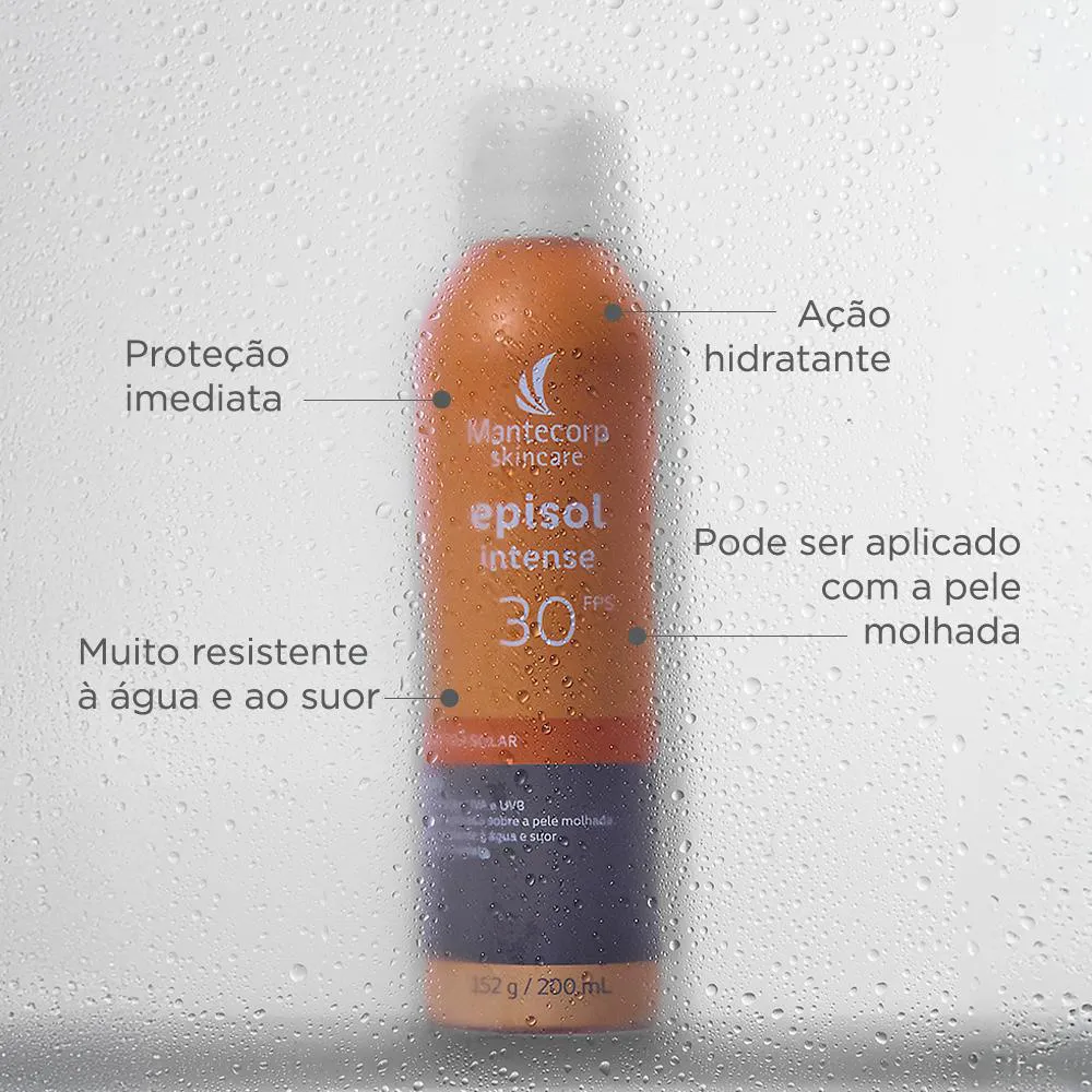 O Episol Intense FPS 30 é um protetor solar em formato spray, desenvolvido para oferecer proteção solar com características especiais de hidratação e cuidado com a pele. Possui textura que permite aplicação rápida e prática.