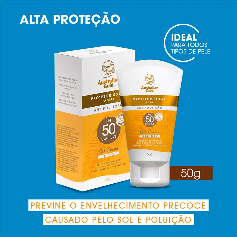 Protetor Solar Facial Australian Gold Antipoluição Fps50 50G