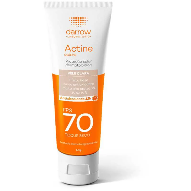 Darrow Actine Solar Fps70: Actine protetor solar FPS 70 colors possui um complexo de filtros que oferece amplo espectro de proteção solar contra os raios UVA/UVB.