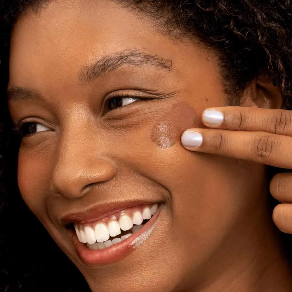 - Uniformiza o tom da pele com cobertura natural, efeito mate e toque seco;