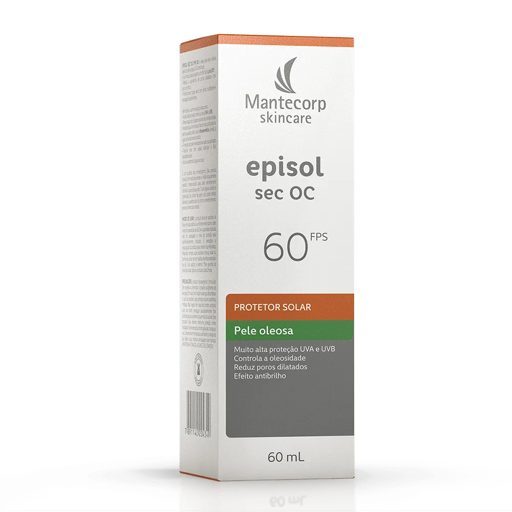 Episol Sec OC é uma linha de protetor solar indicada para pele oleosa. Devido a sua tecnologia Skin SelfControl com ativos que agem diretamente na glândula sebácea. Episol Sec OC controla a oleosidade dapele por 12h, reduz os poros e proporciona sensação de pele limpa com toque seco e efeito matificante.Oferece alta proteção contra dos danos solares causados pelos raios UVA/UVB e Infravermelho A.Tecnologia Skin Self Control: Nova geração em fotoproteção para pele oleosa (glicoesferas de sílica précarregadascom os ativos Miniporyl e Nelupure)12h de controle da oleosidade e brilho facialReduz o tamanho e número de poros (ação adstringente)Alta proteção UVA/UVB e Infravermelho APrevine o envelhecimento precoceToque seco e Efeito MatteSensação de pele limpaPreserva o colágenoDisponível nos FPS30, FPS60 e FPS99Não obstrui os porosTextura agradável de rápida absorção e fácil espalhabilidadeUso diárioMuito resistente à água