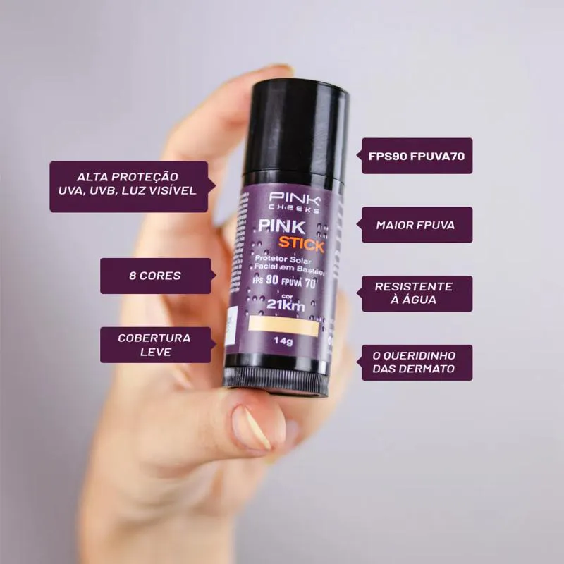 O Pink Stick é composto por filtros químicos nobres e filtros físicos que se complementam para oferecer altíssima proteção contra os raios UVA e UVB – a combinação de diferentes tipos de filtros amplia o espectro de proteção, tornando-a mais segura e confiável.