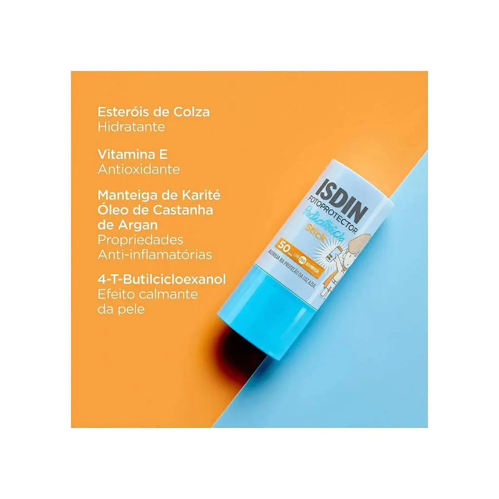 - protetor solar Facial infantil ISDIN Pediatrics FPS 50 Stick – 20g O Protetor Solar Facial Infantil ISDIN Pediatrics FPS 50 em stick foi desenvolvido especialmente para proteger a pele delicada das crianças contra os danos causados pelos raios solares. Com formato prático e fácil de aplicar, oferece alta proteção contra raios UVA e UVB, sendo ideal para o uso diário em áreas sensíveis do rosto. Sua textura em bastão facilita a aplicação sem escorrer, permitindo reaplicações rápidas ao longo do dia, inclusive em movimento. É resistente à água e adequado para a pele sensível das crianças. Características do produto: