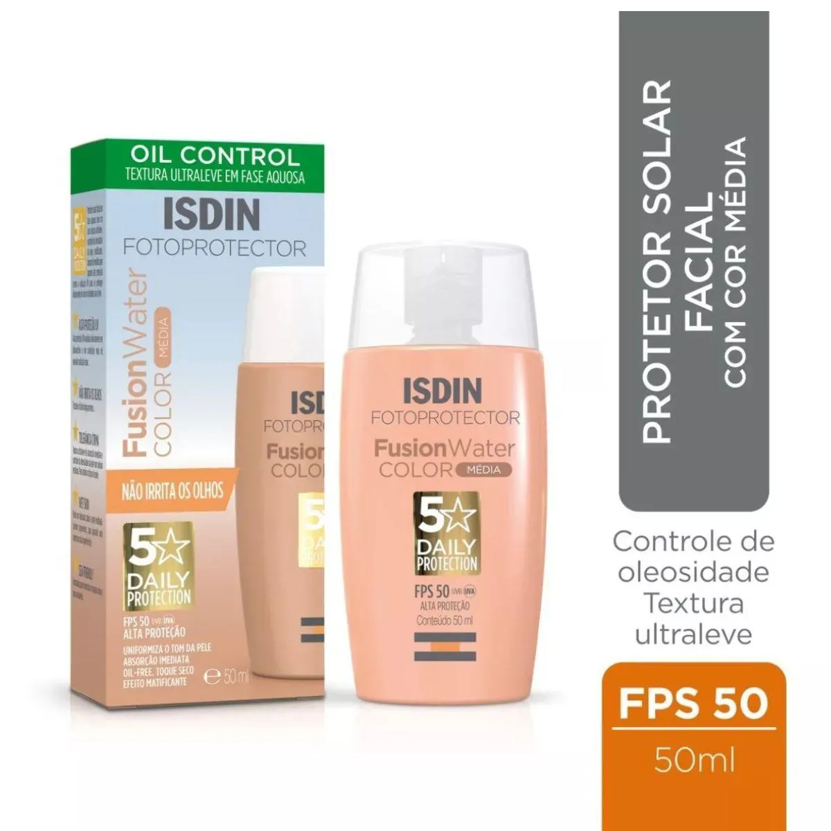 Protetor Solar Facial Isdin Fusion Water Color Média Fps50 50Ml