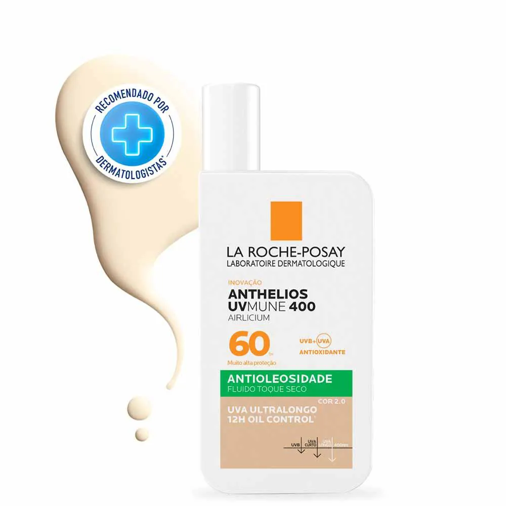 Descubra o novo Anthelios UVMune 400 Airlicium FPS60 com cor, nos tons 2.0, 4.0 e 6.0, uniformiza o tom da pele com uma textura leve e protege contra luz visível, ideal para peles oleosas.