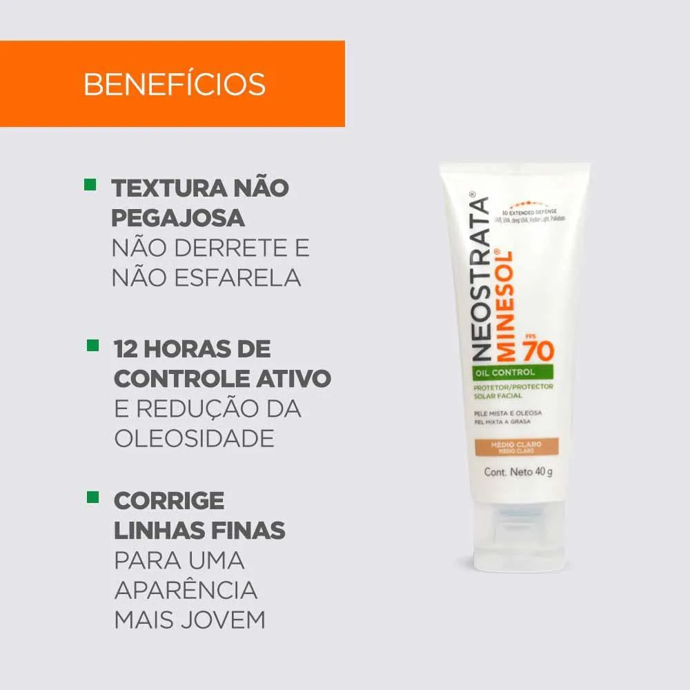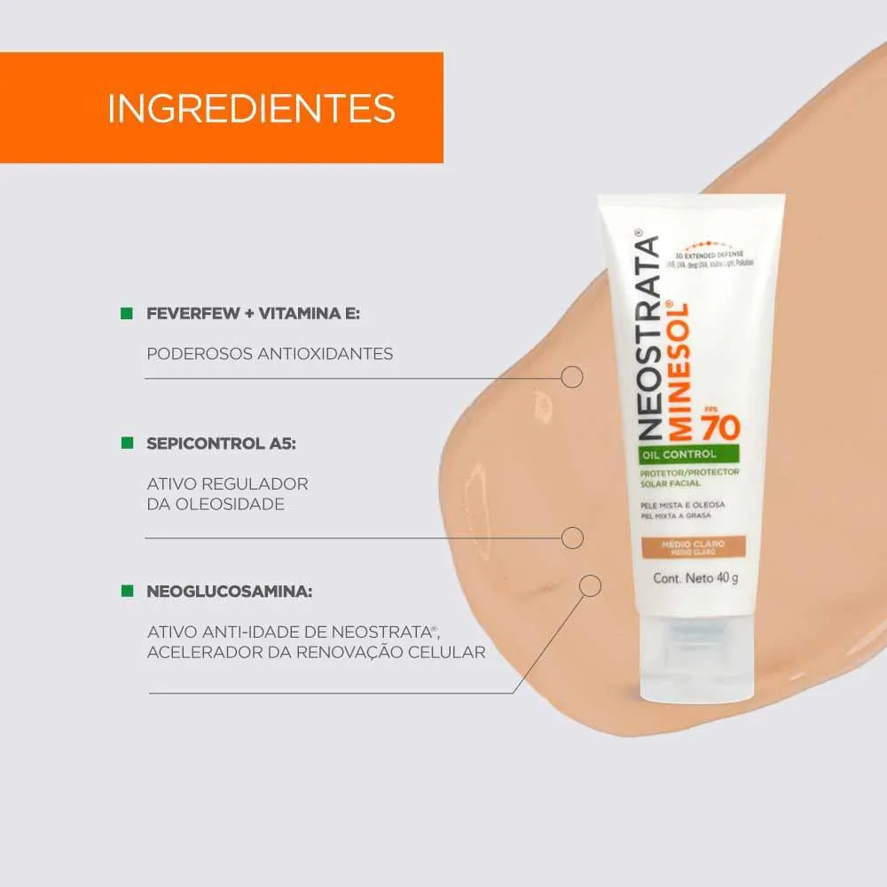 Protetor Solar Facial Neostrata Minesol Oil Control Fps 70 Médio Claro