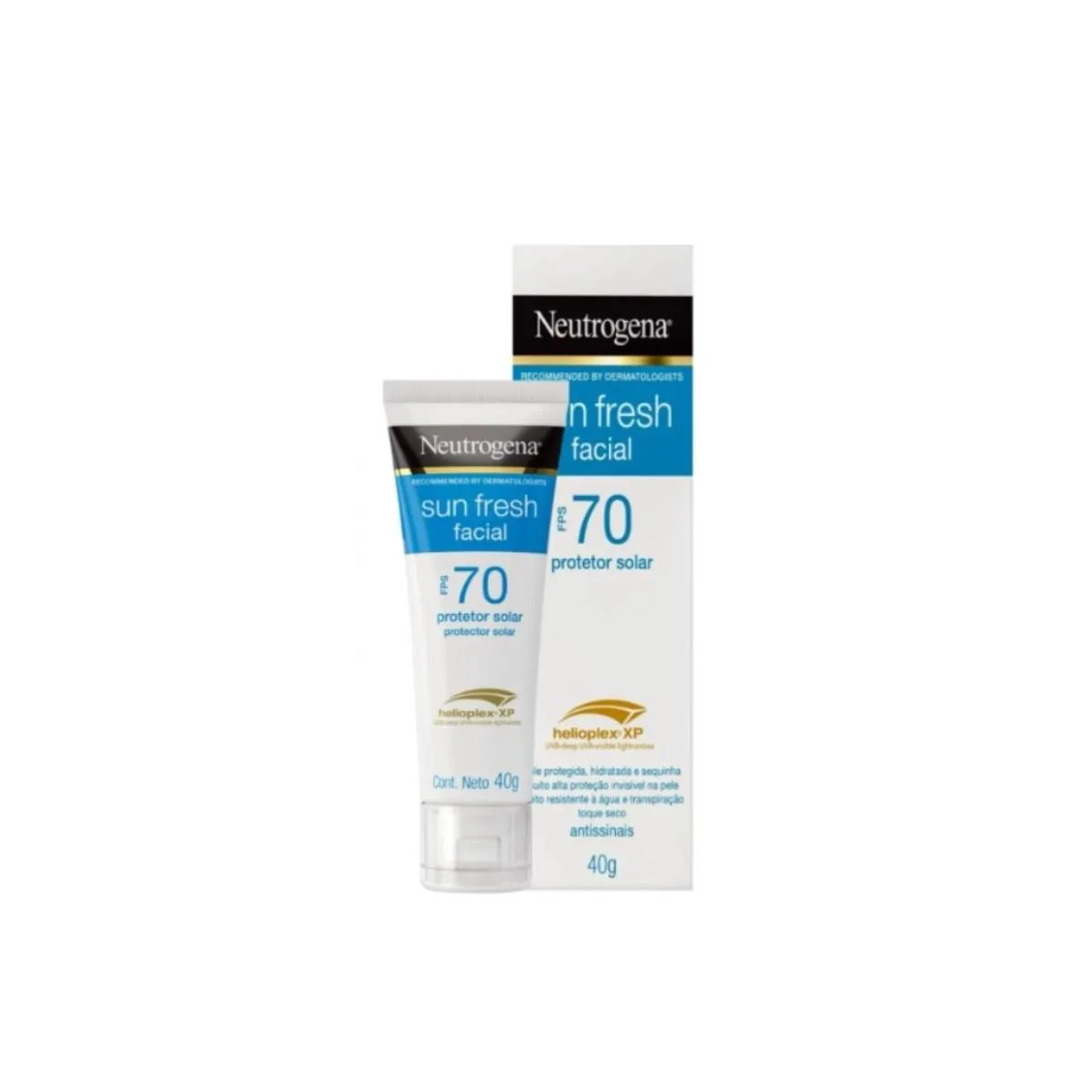protetor solar facial para todos os tipos de pele. Neutrogena Sun Fresh Facial FPS 70 protege dos raios UVA e UVB, além de deixar a pele hidratada.