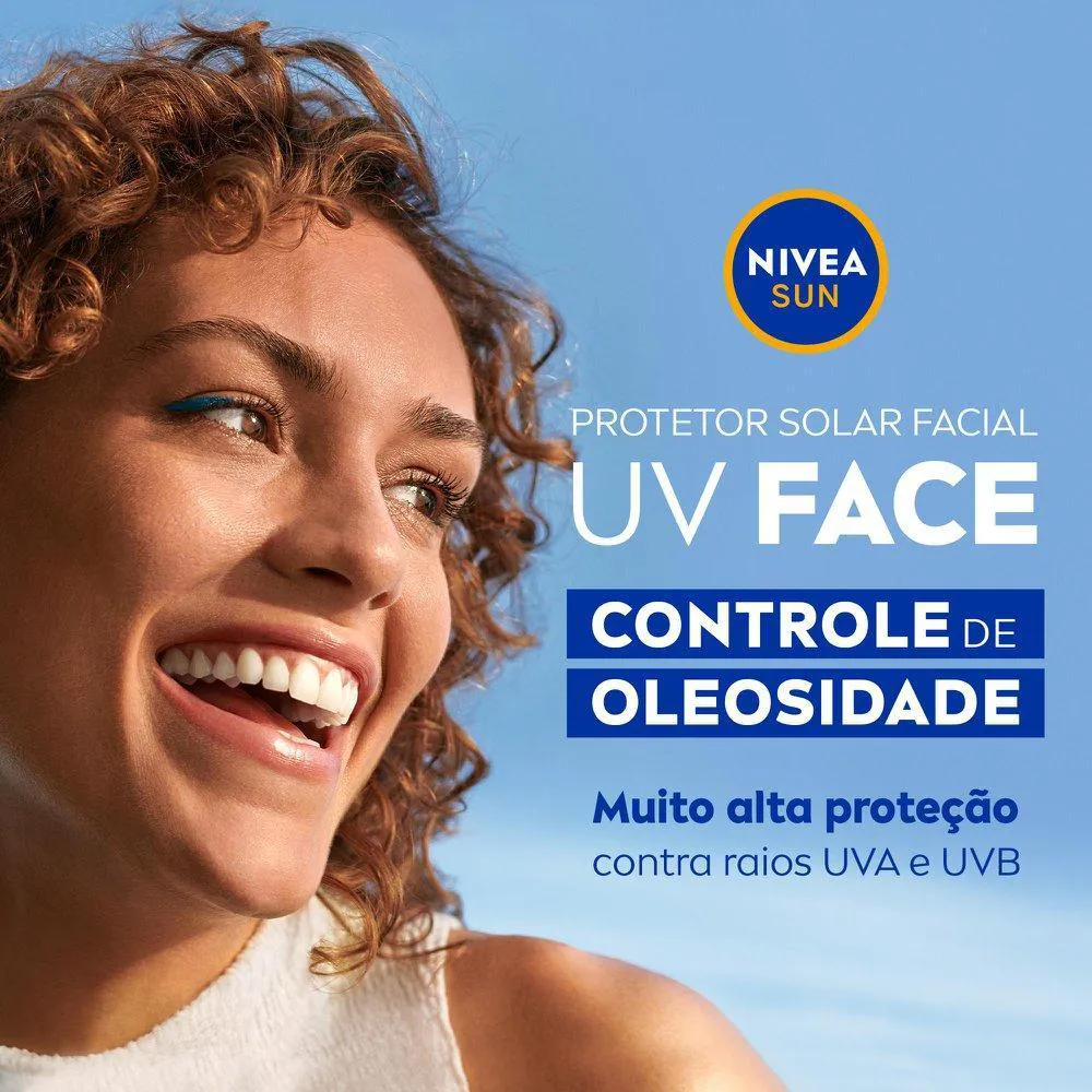 O que é?NIVEA Sun UV Face Controle de Oleosidade FPS 60 é um protetor solar com alta proteção que, além de não obstruir os poros, controla a oleosidade da pele, mantendo a aparência sequinha ao longo do dia. Oferece textura leve e não pegajosa, sendo ideal para uso diário. Fórmula oftalmologicamente testada.