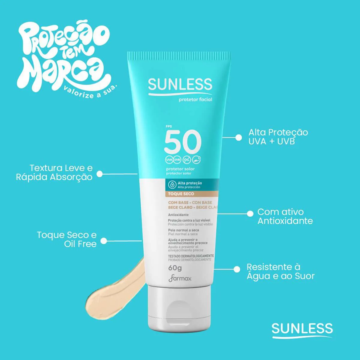 Protetor Solar Facial Sunless FPS 50 Claro 60g