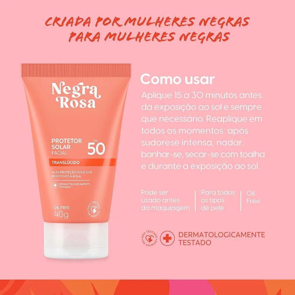 Protetor Solar Facial Translúcido Negra Rosa Fps50 40G
