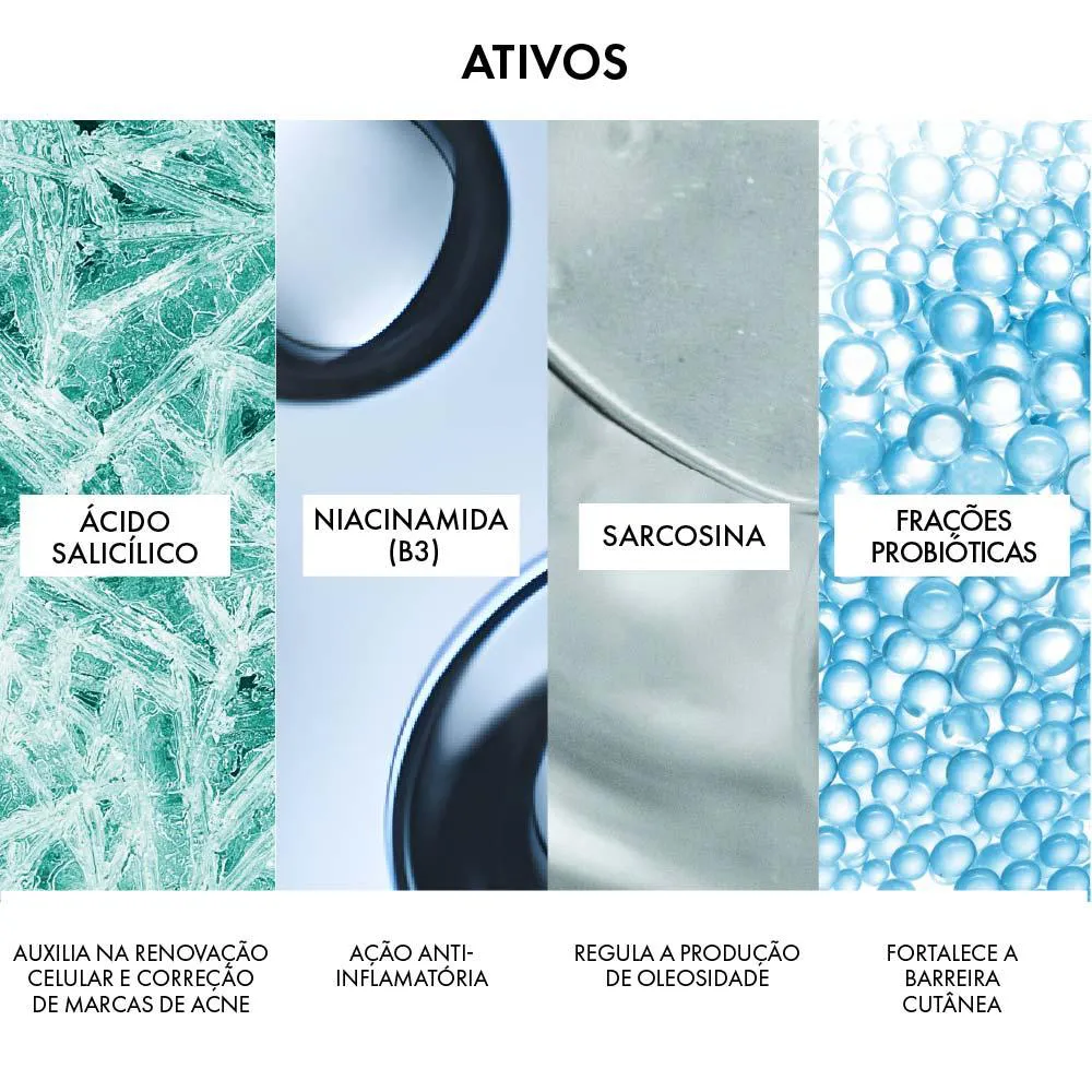 Niacinamida (vitamina B3), Ácido Salicílico, Água Vulcânica de Vichy.