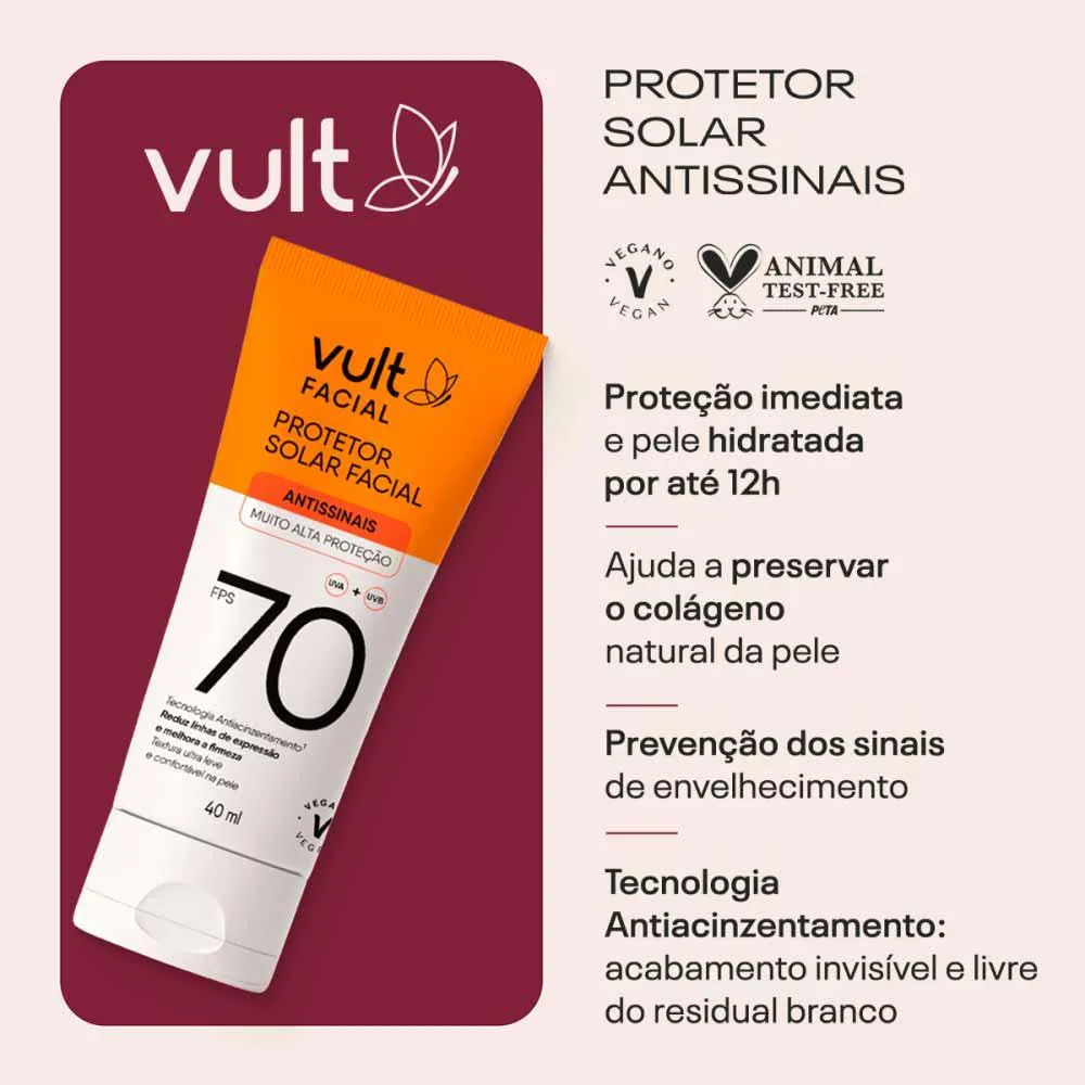 protetor solar Facial Vult Antissinais FPS 70