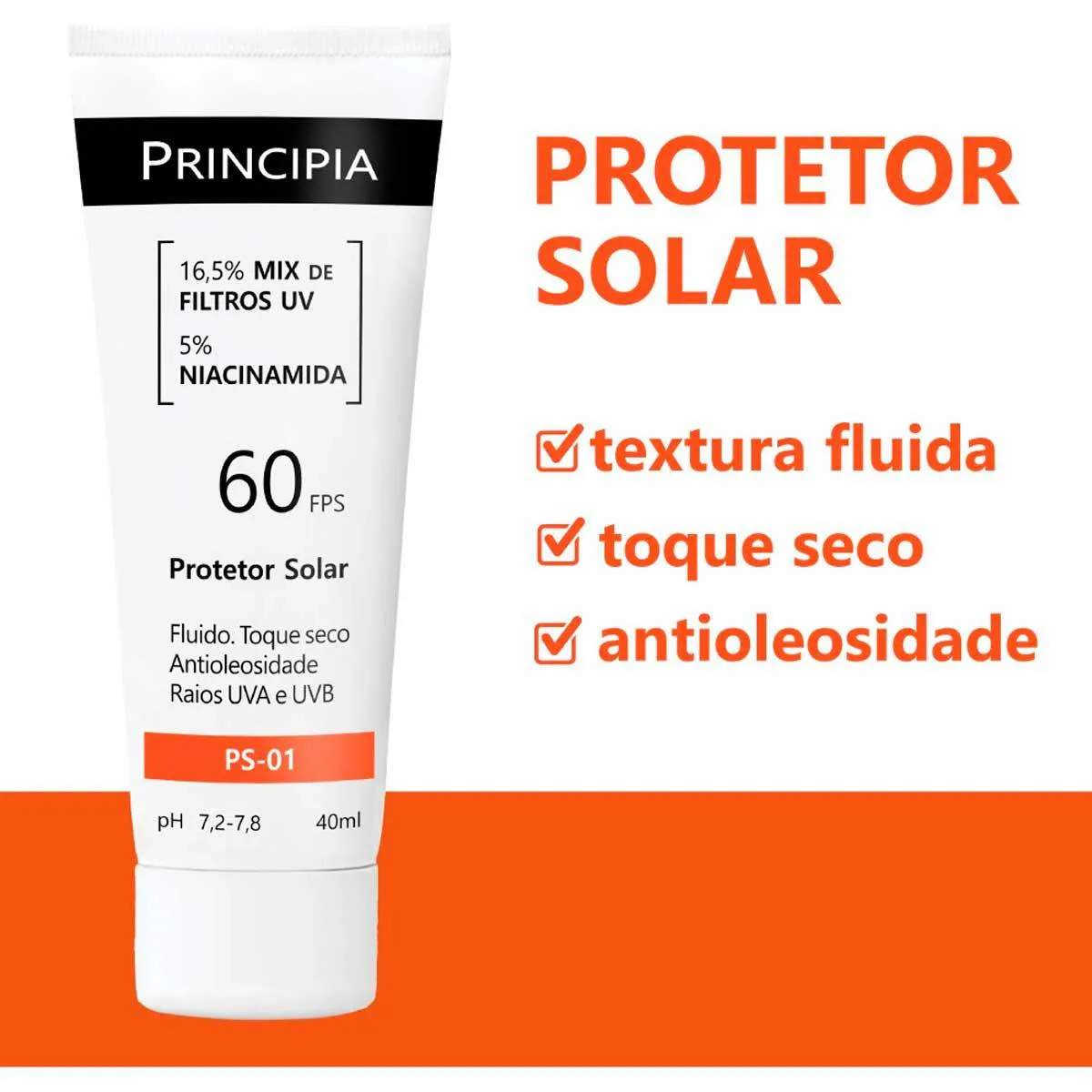 Protetor Solar Fluido Toque Seco Ps-01 Fps 60 Principia 40Ml