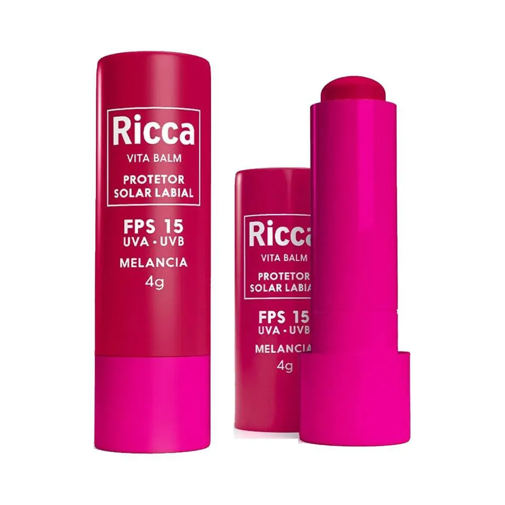 O Protetor Solar Labial Ricca Fps15 Melancia é um produto de cuidado labial com proteção solar, desenvolvido especificamente para hidratar e proteger os lábios contra os raios solares. Sua função principal é prevenir o ressecamento, rachaduras e danos causados pela exposição solar, oferecendo hidratação e um toque suave de cor com fragrância de melancia, além de proporcionar um fator de proteção solar FPS 15 para manter os lábios saudáveis e protegidos.