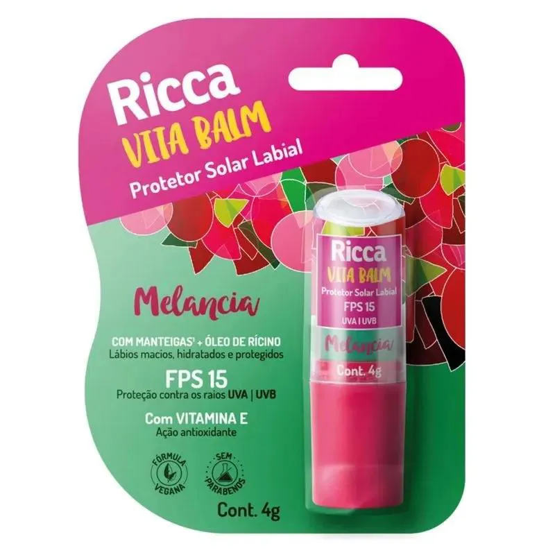 Protetor Solar Labial Ricca Fps15 Melancia Blister
