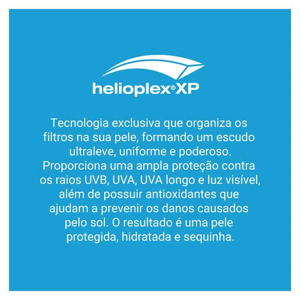 É de rápida absorção, fácil de aplicar e possui tecnologia HELIOPLEX que proporciona alta proteção contra os raios UVA e UVB, além de prevenir o envelhecimento e as manchas causadas pelo sol e ser muito resistente à água e ao suor