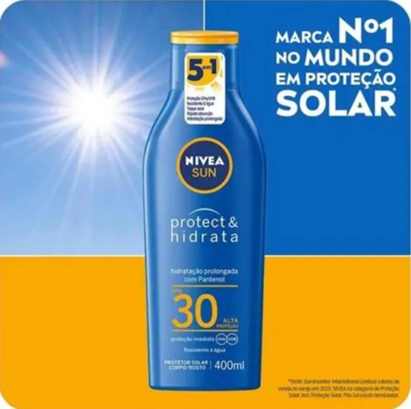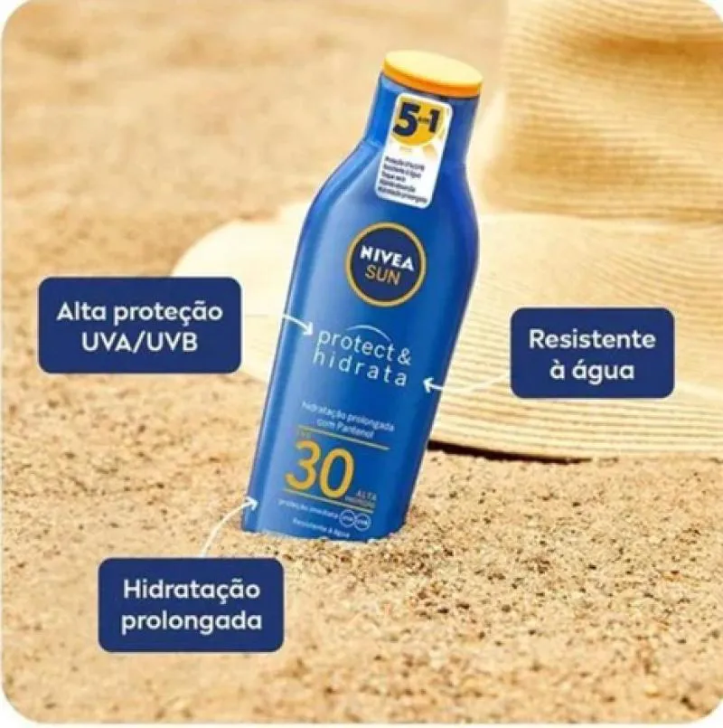 protetor solar com hidratante que oferece alta proteção ao sol. Toque seco de rápida absorção. Garanta o seu! Para que serve o Protetor Solar Nivea Protect & Hidrata? Não deixa a pele oleosa, com sua fórmula oil free o protetor solar é rapidamente absorvido pelo corpo.