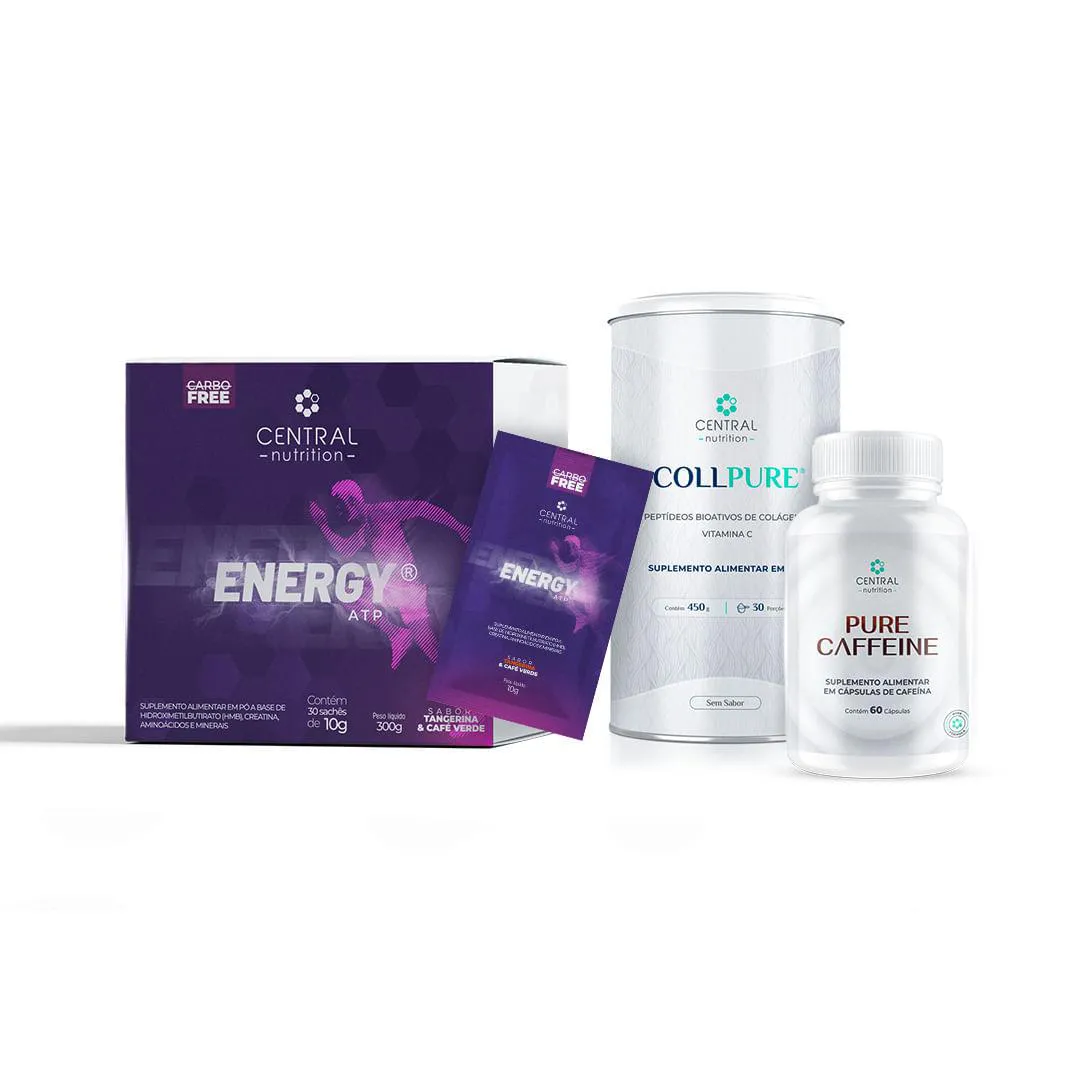 O Protocolo Energia e Performance é composto por: 1 ENERGY ATP® - 10g 30 Sachês - Sabor Tangerina 1 COLLPURE® - 450g - Sem Sabor1 PURE CAFFEINE - 60 Cápsulas Energia e Performance é o protocolo que combina ENERGY® ATP, COLLPURE® e PURE CAFFEINE, para aqueles que buscam um impulso energético para melhorar a resistência física, e otimizar o desempenho geral em suas atividades diárias e treinos.
