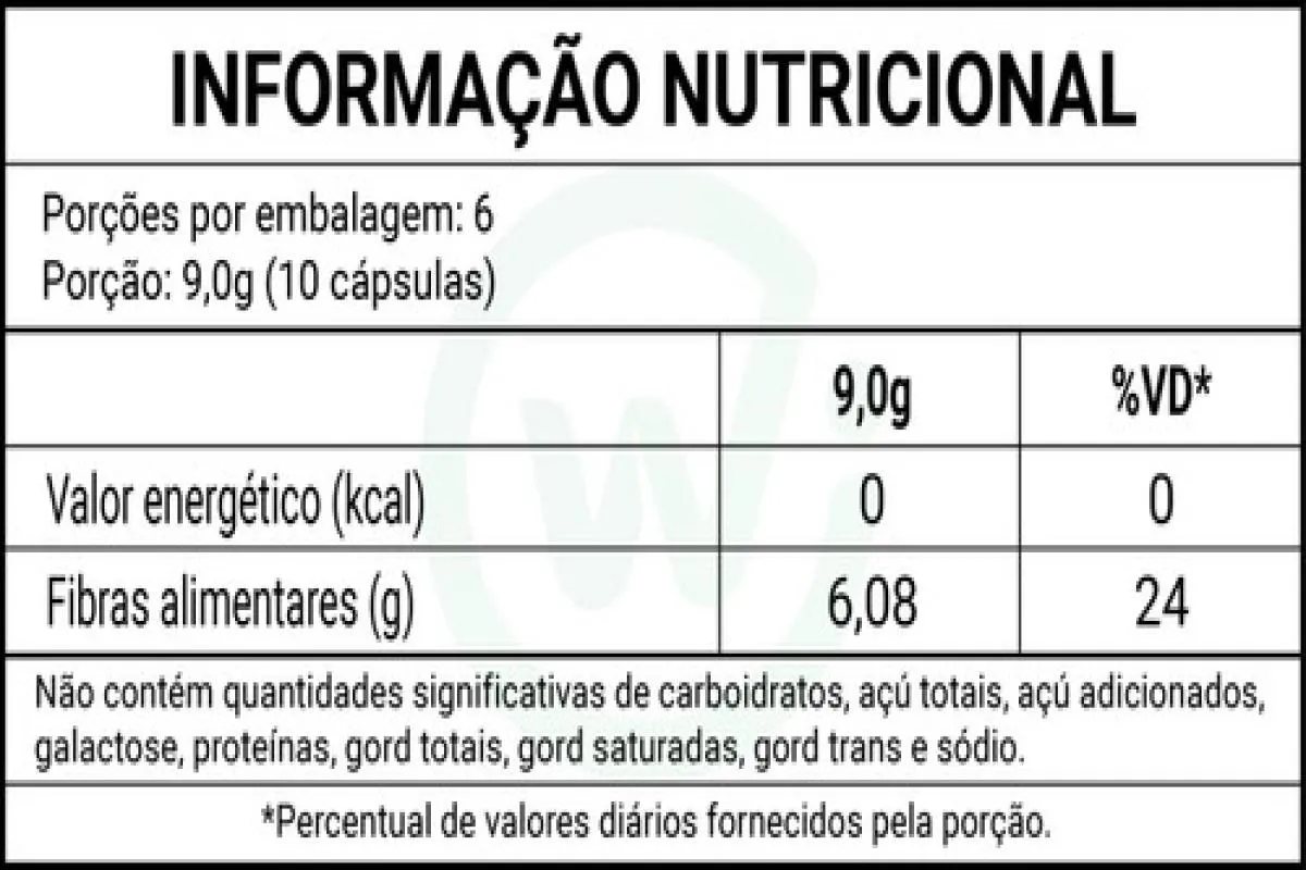 Apoio ao funcionamento intestinal e ao trânsito regular, por ser fonte de fibras solúveis. Sensação de saciedade, auxiliando no controle da fome quando associado a uma alimentação equilibrada. Complemento de fibras para a dieta diária, de forma prática em cápsulas.