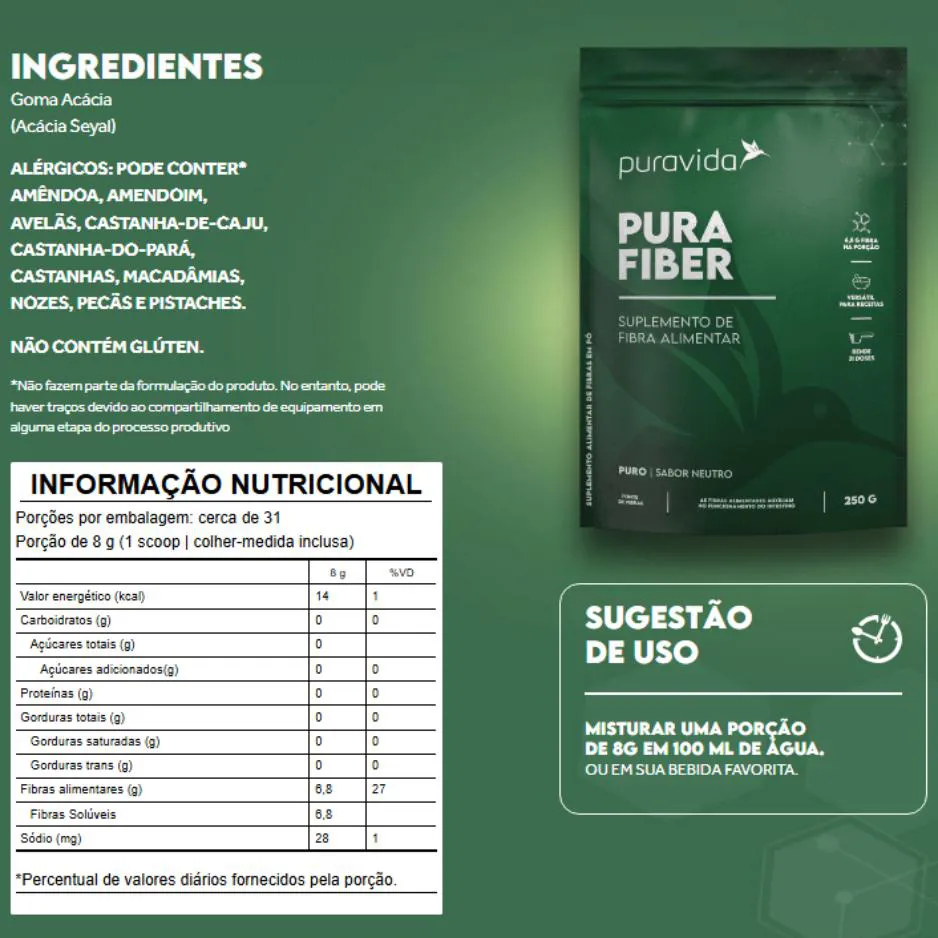 Pura Fiber ( Fibra Alimentar ) - Pura Vida Neutro 250g - Kit 2 Unid
