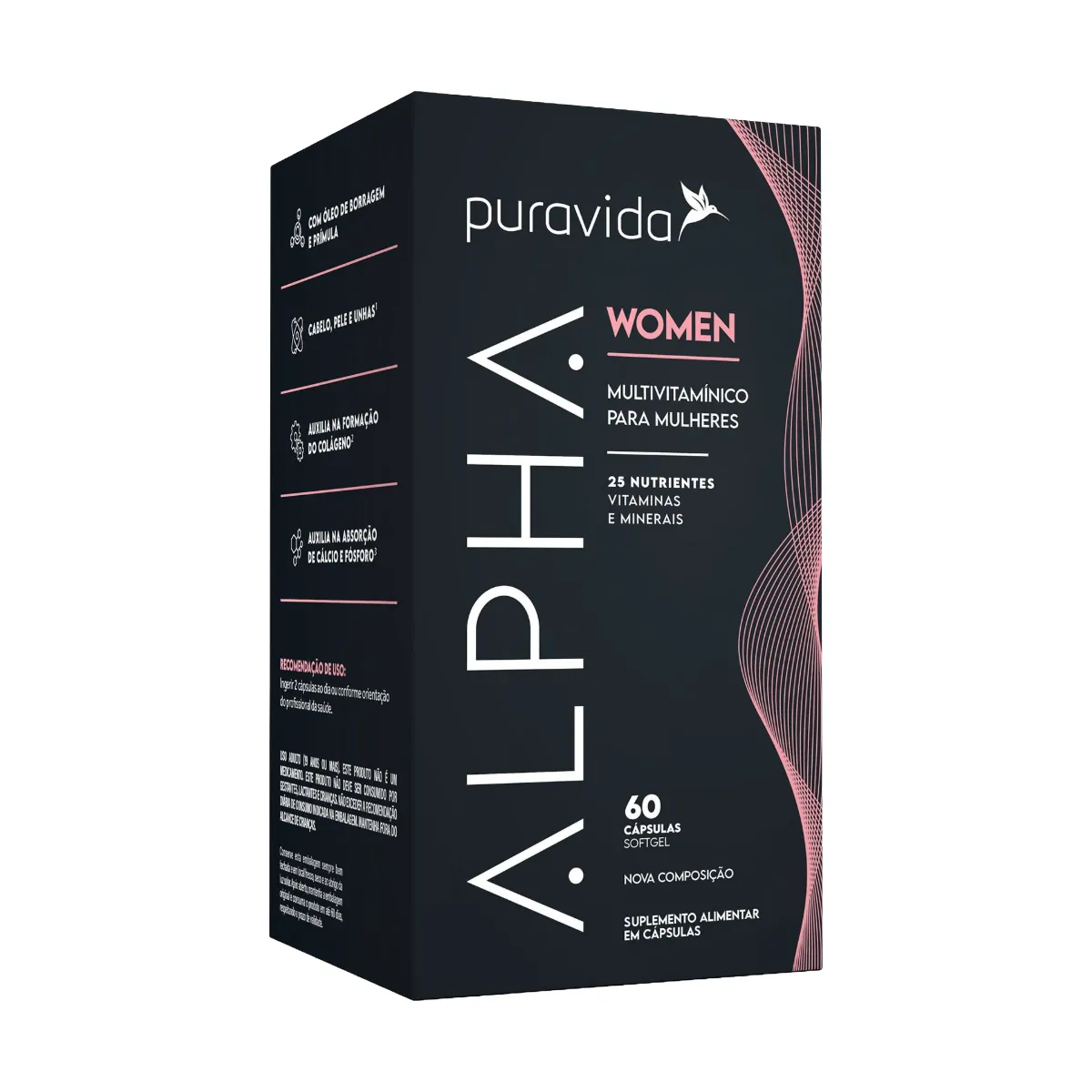 - Alpha Women Puravida é um suplemento alimentar usado para complementar vitaminas e minerais na rotina feminina.