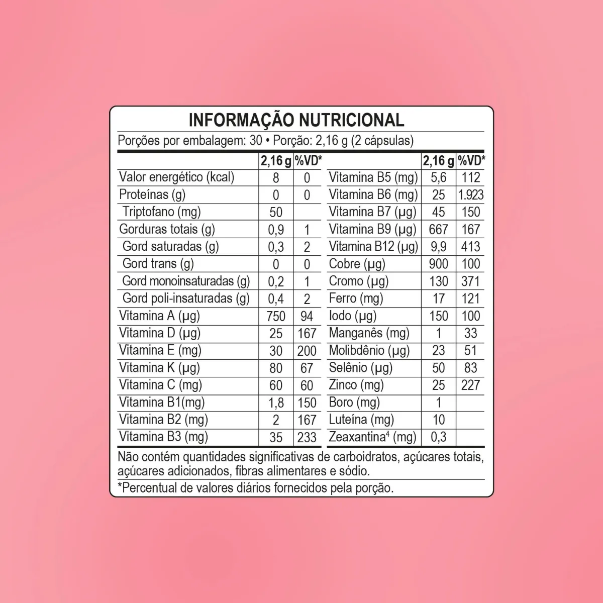 - Formulado especialmente para as necessidades nutricionais das mulheres.