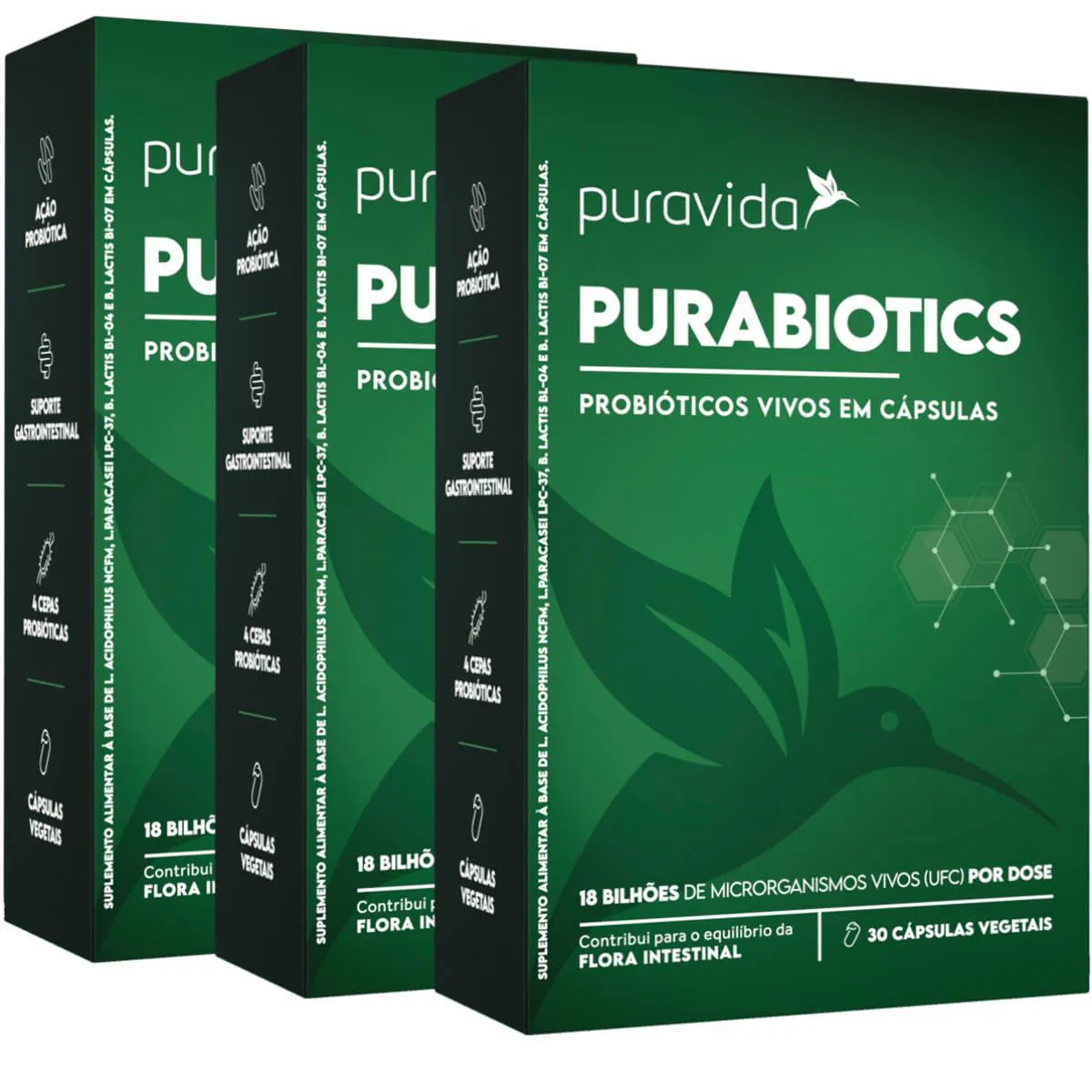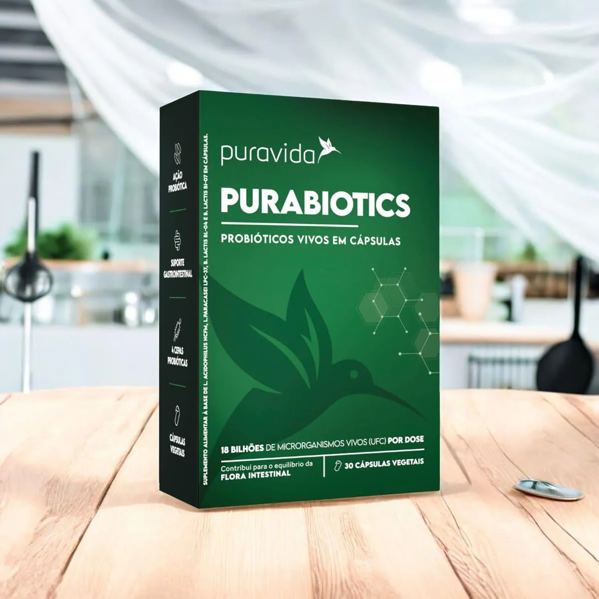 Purabiotics da Puravida é um suplemento alimentar premium formulado para promover o equilíbrio da microbiota intestinal e fortalecer as defesas naturais do organismo. Cada dose contém 18 bilhões de microrganismos vivos, provenientes de quatro espécies probióticas cuidadosamente selecionadas, encapsulados em cápsulas vegetais gastrorresistentes que garantem a chegada dos probióticos vivos ao intestino, onde exercem sua função pró-saúde.