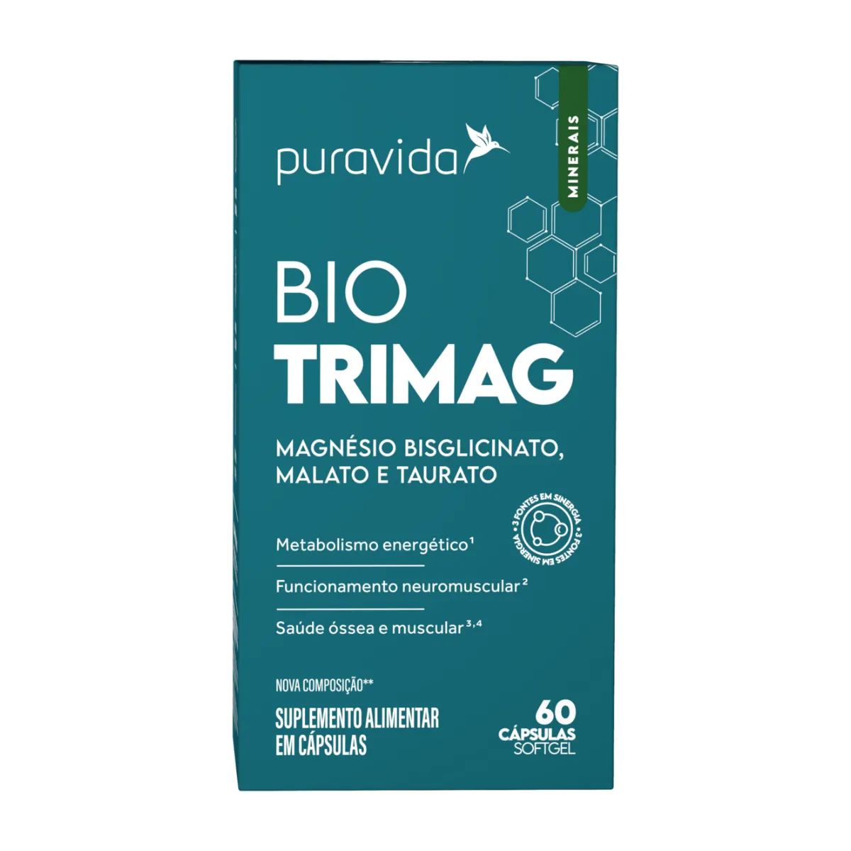 Magnésio Puravida Bio Tri Mag 60 capsulas